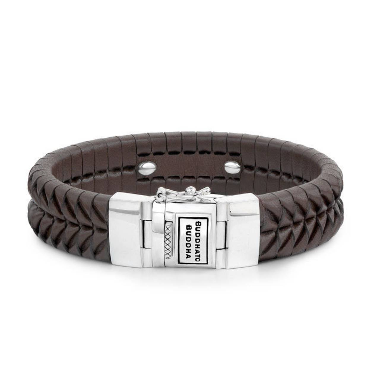 Buddha to Buddha - Komang Leather Bracelet Brown, Armband zilver/leer 161BR E, maat 19cm - 001J051610412