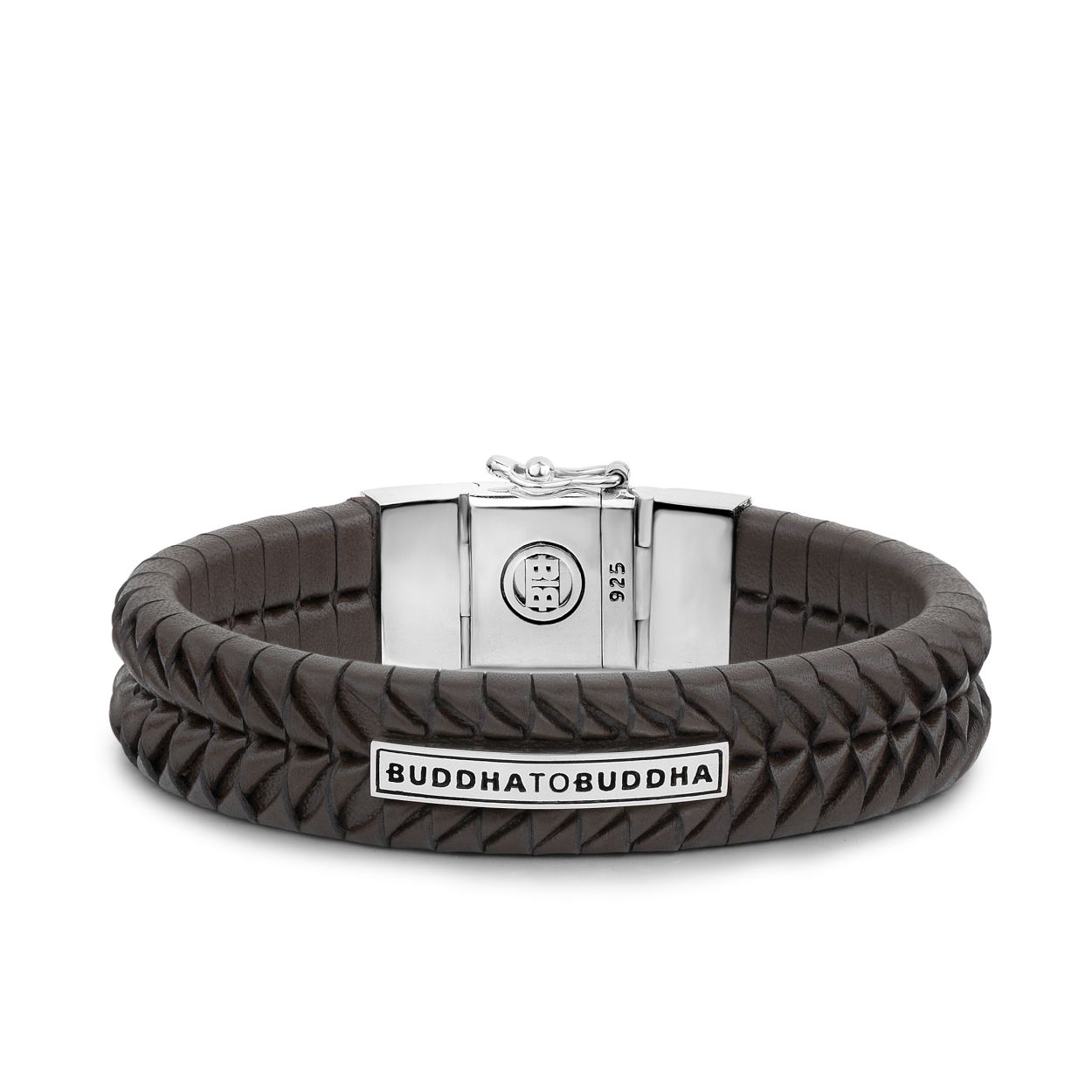 Buddha to Buddha - Komang Leather Bracelet Brown, Armband zilver/leer 161BR F, maat 21cm - 001J051610413