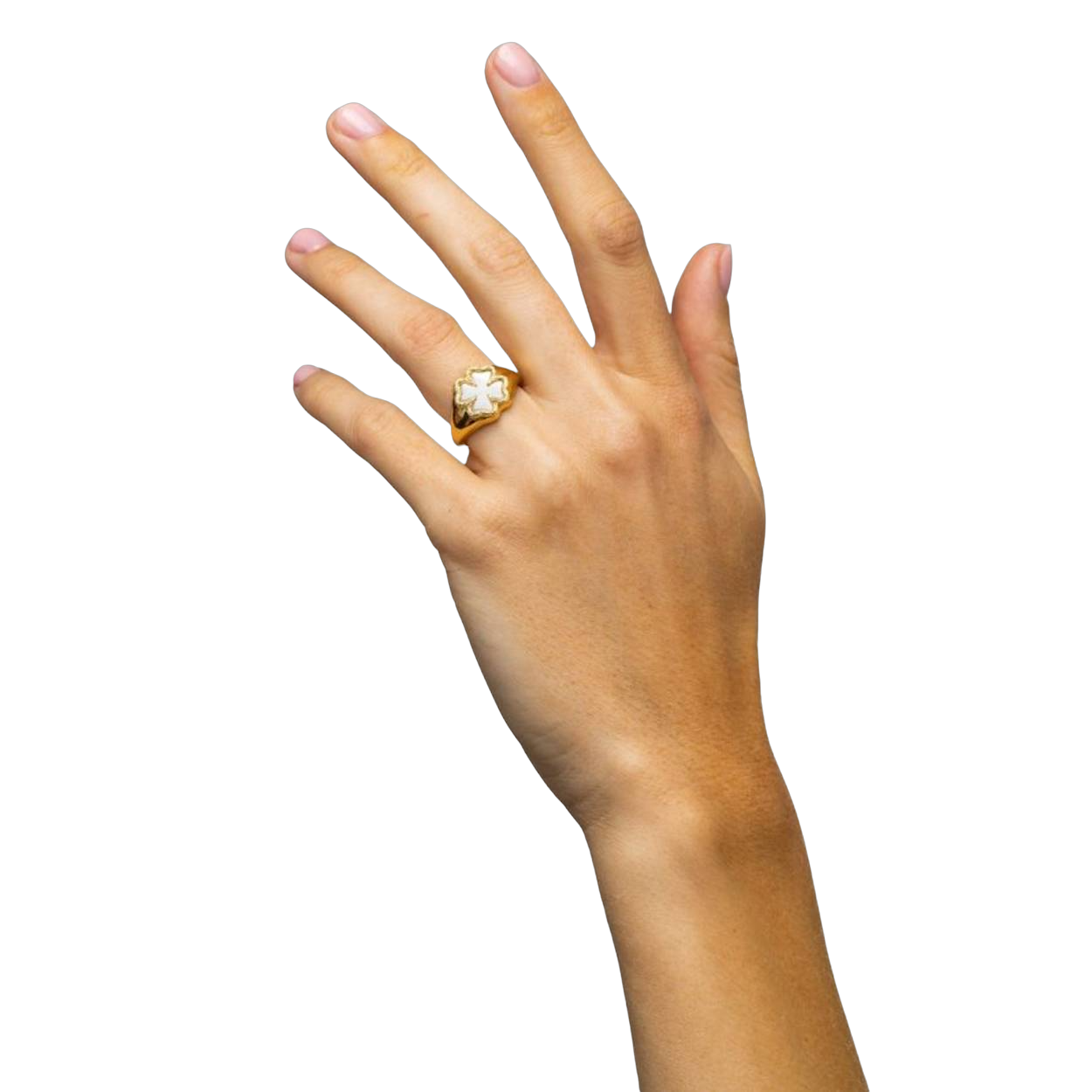 Buddha to Buddha - Zilveren zegelring met parelmoer, Signet Ring Katja Clover Verguld, 178GV - 001J02178E916