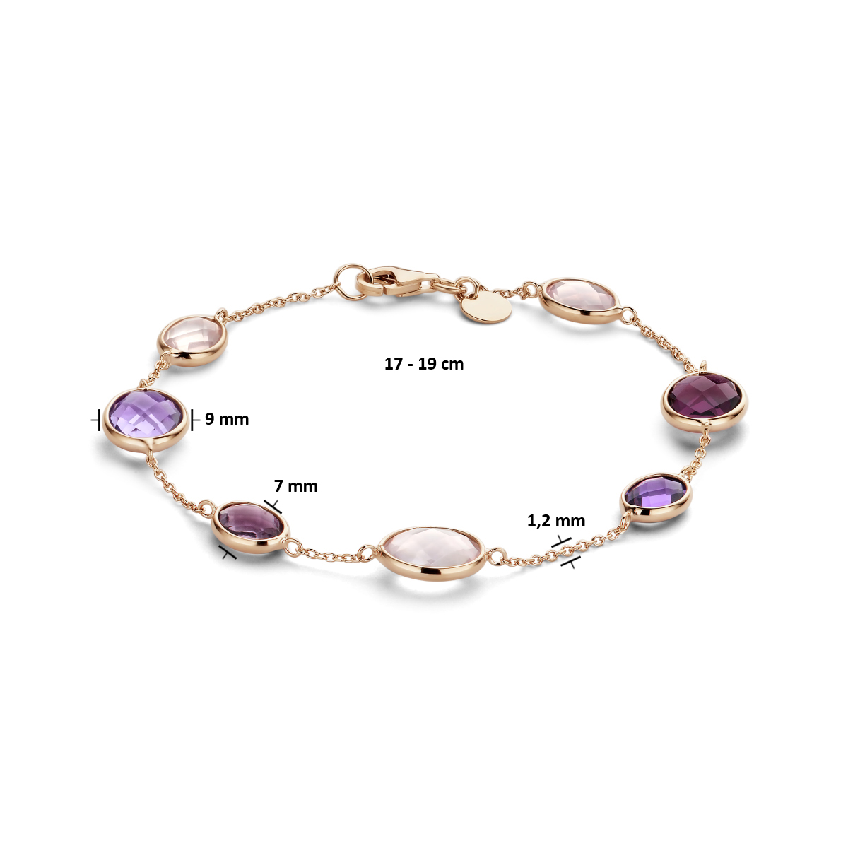 Huiscollectie - Rozenkwarts. Rhodoliet en Amethist roségouden armband