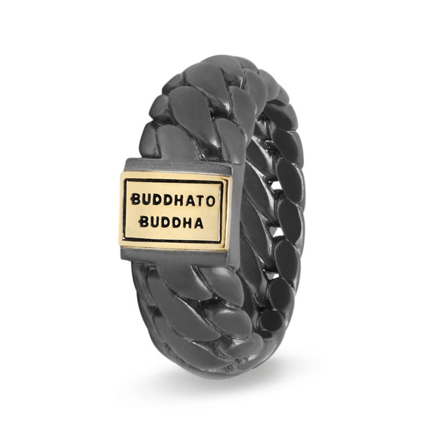 Buddha to Buddha - Ben Small Ring Black Rhodium Gold, Zwart gerhodineerd zilver met gouden logo 542BRG maat 20 - 001J02542B120