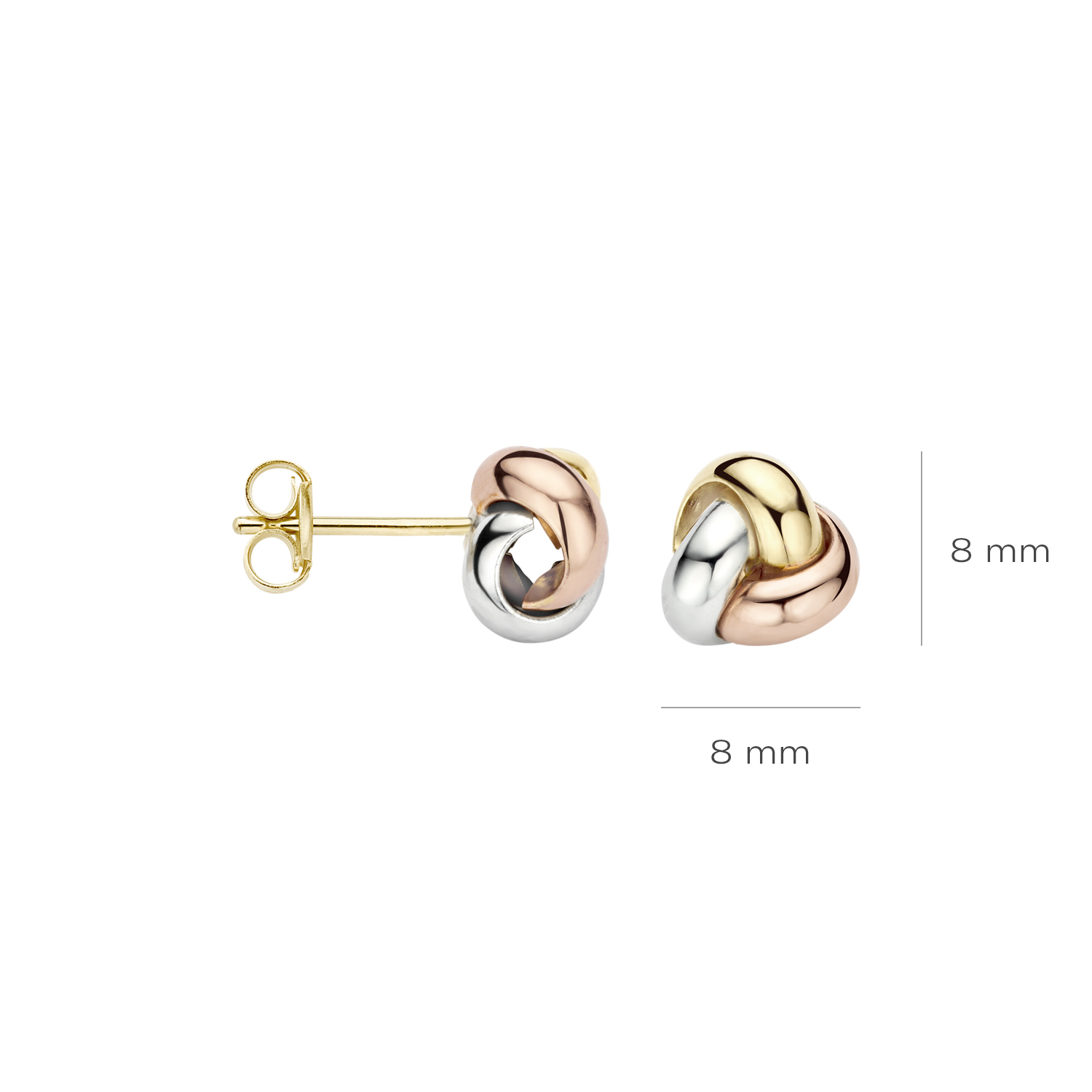 Blush - 14kt tricolor geel/wit/rosegouden oorstekers, knoop 8mm - 7145WYR