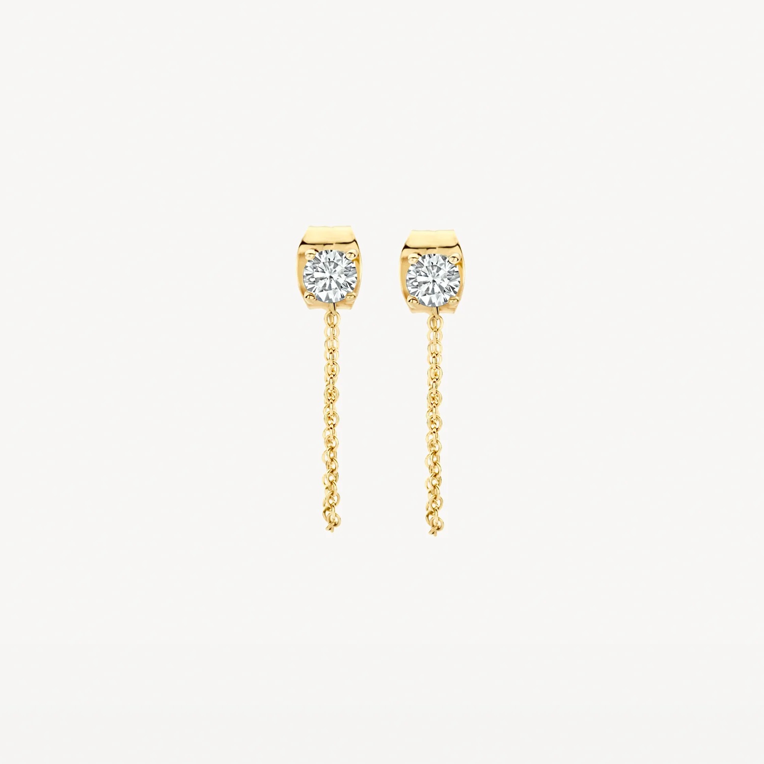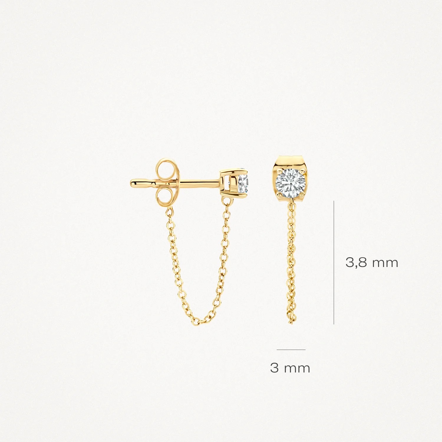 Blush - Geelgouden oorstekers met zirconia en kettinkje, 3x38mm - 7345YZI