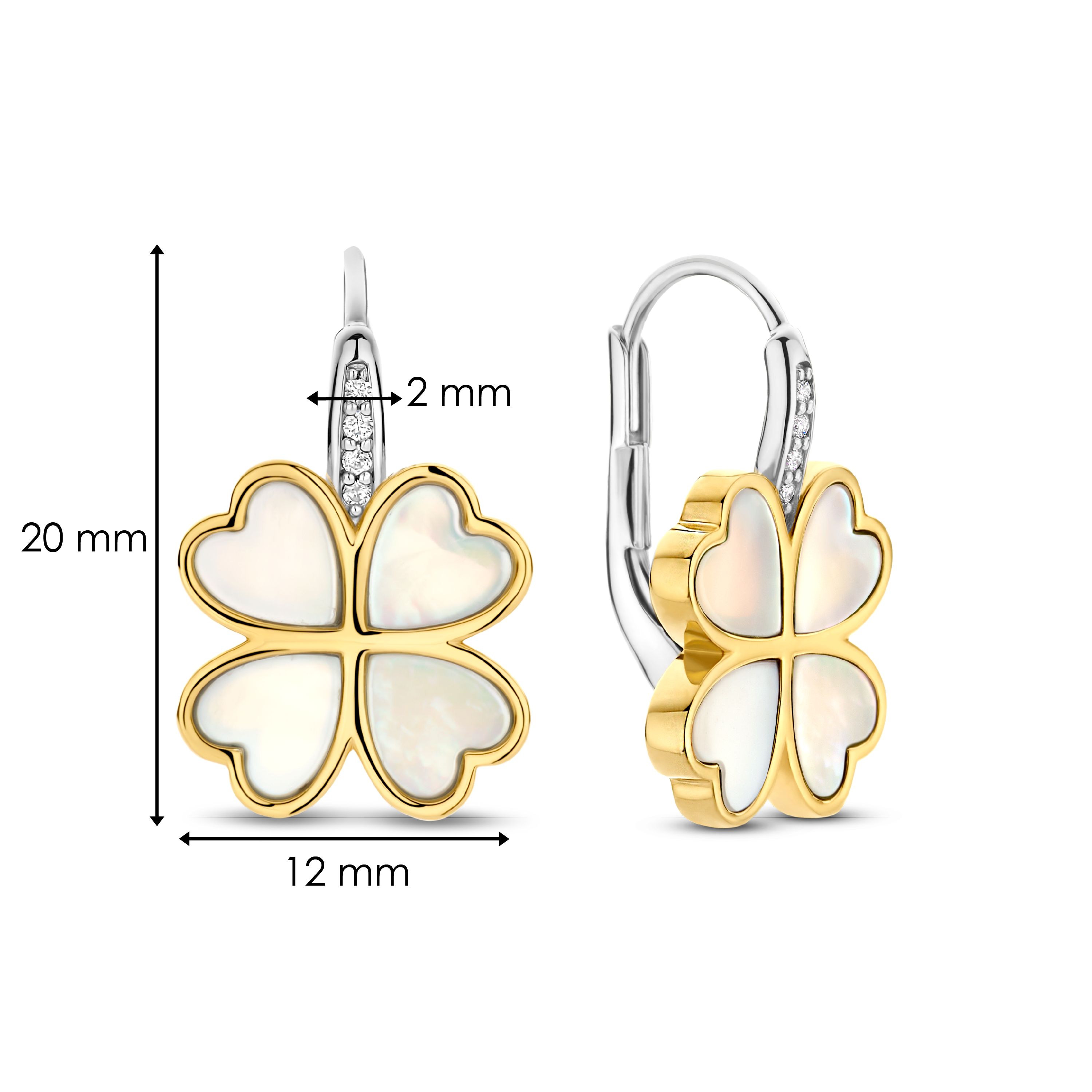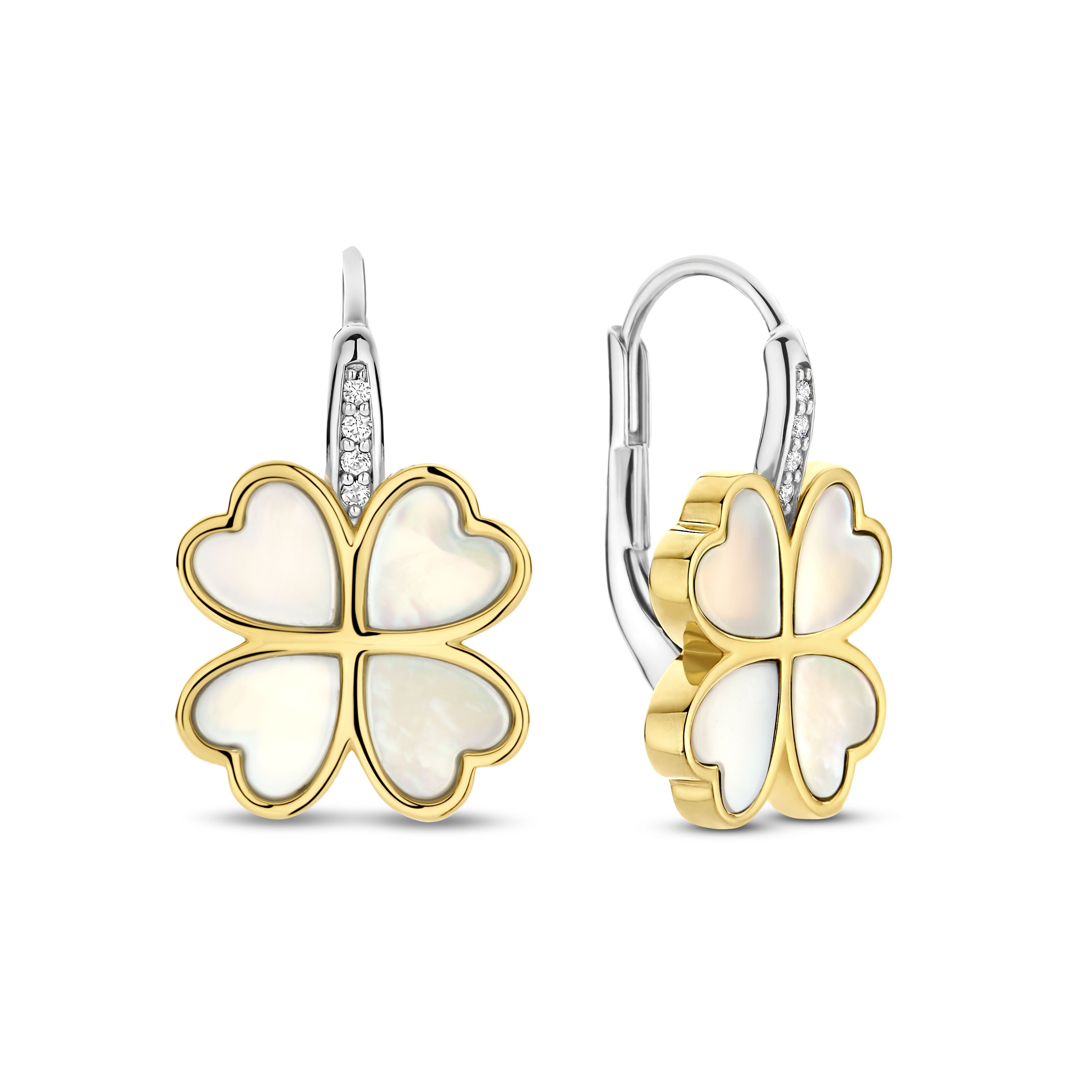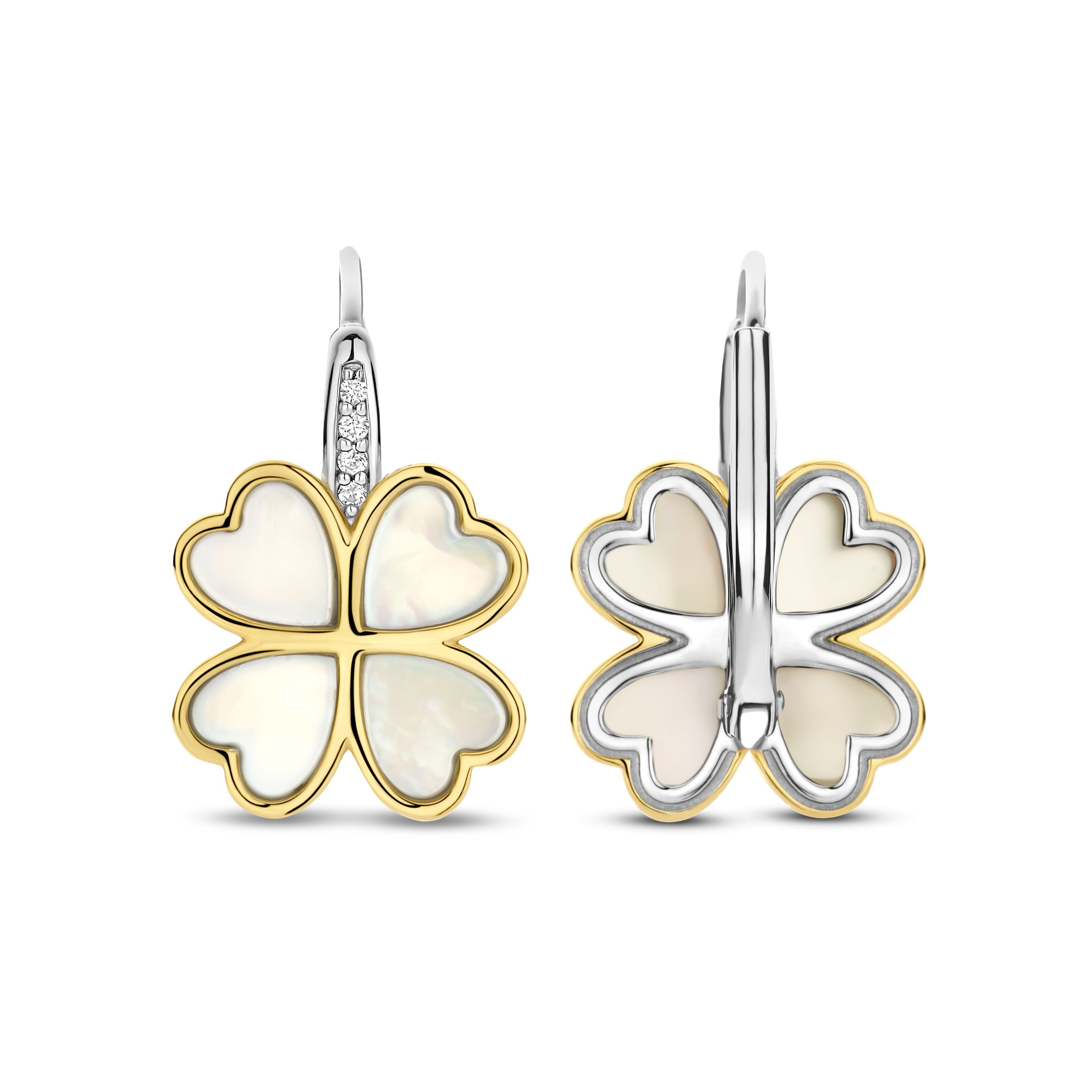 Ti Sento Milano - Zilveren/parelmoeren Klavertje 4 oorhangers, bicolor geel verguld/zilver  - 78005MW