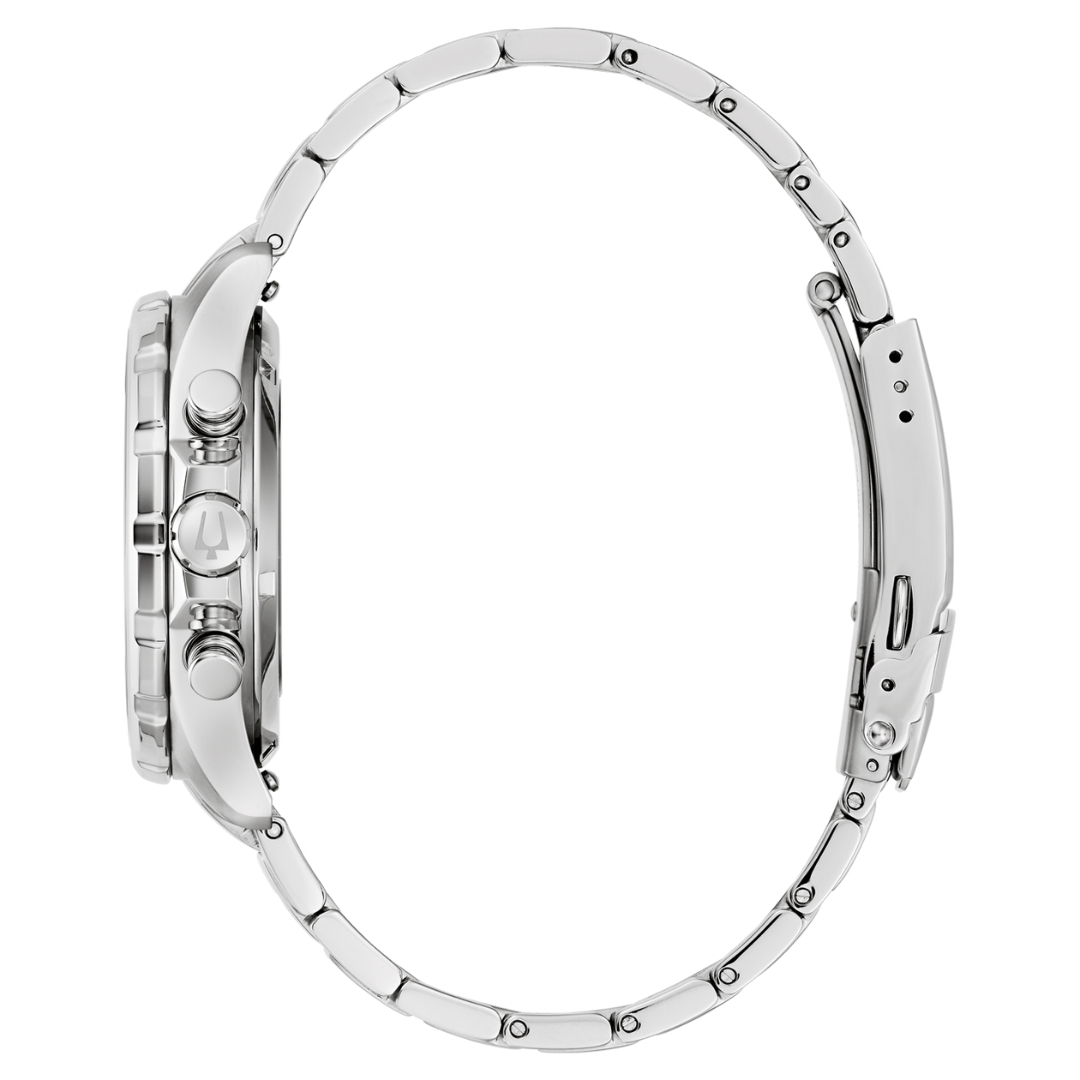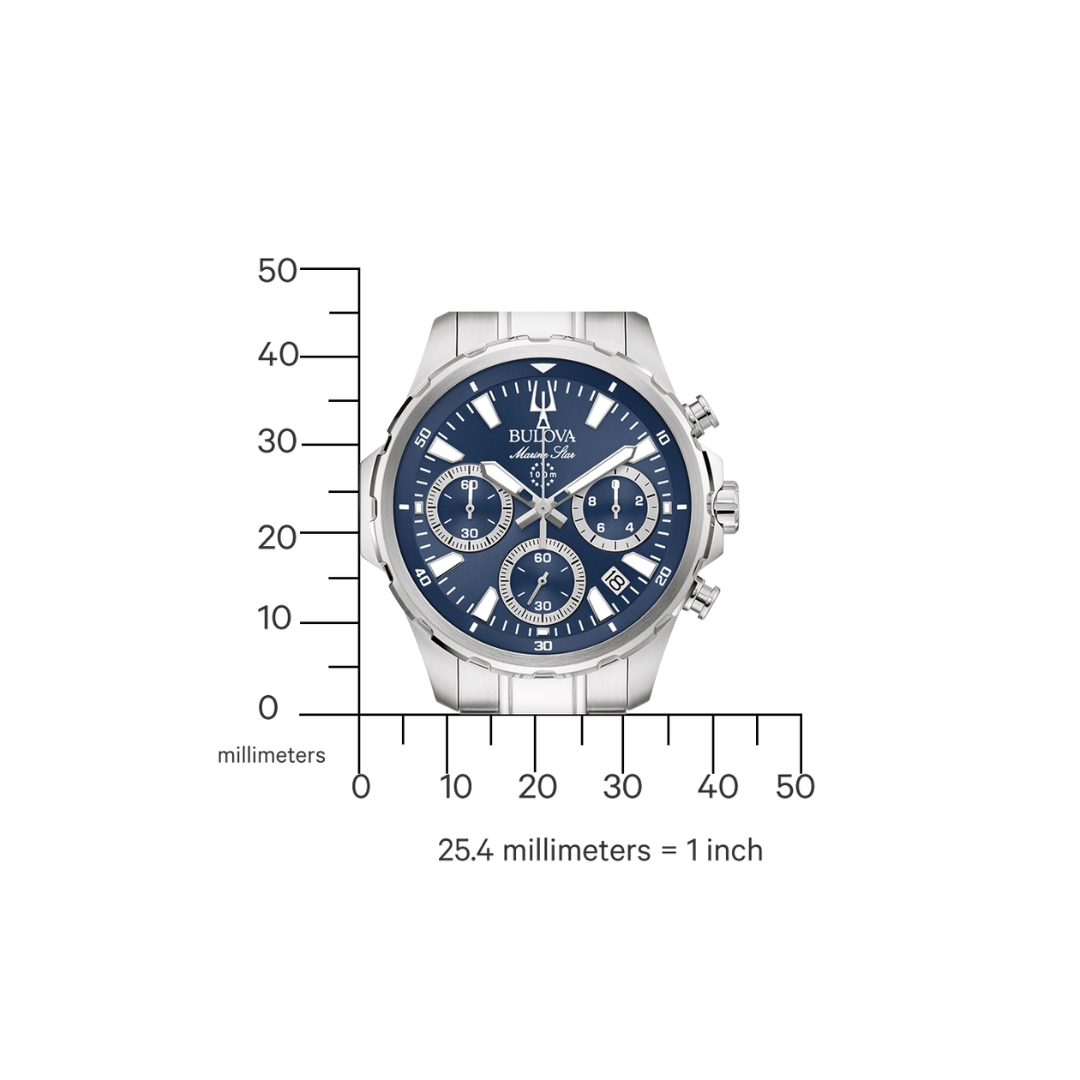Bulova - Staal heren horloge met chronograaf, blauwe wijzerplaat, 100 meter WR, Saffierglas - 96B466