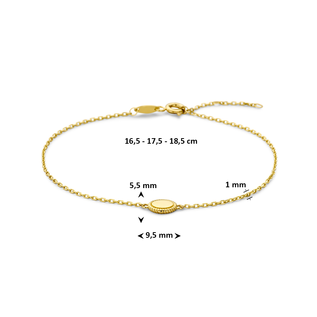 Huiscollectie - 14k Geelgouden armband met draaglengtes van 16.5-17.5-18.5cm. De armband heeft een schakelbreedte van 1mm. De hanger heeft een afmeting van 5.5x9.5mm. - 4035403
