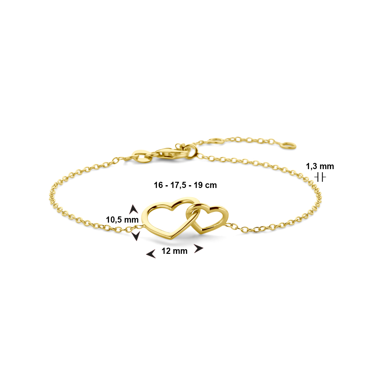 Huiscollectie - 14k Geelgouden armband uitgevoerd met twee hartjes. De armband heeft draaglengtes van 16, 17.5 en 19cm. Uitgevoerd met karabijnsluiting. De schakelbreedte is 1.3mm. - 4030417