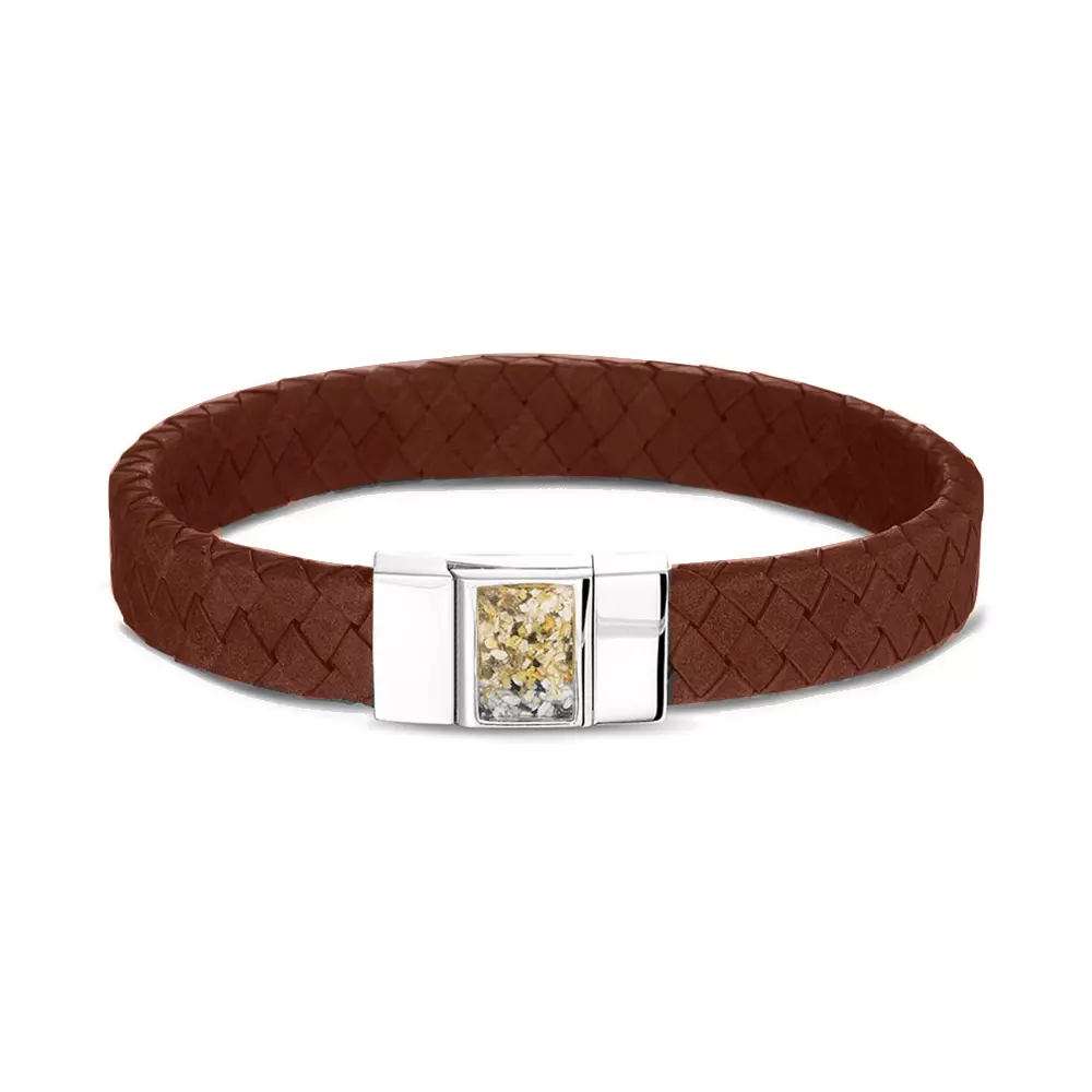 See You Gedenksieraden - Lederen armband met zilveren sluiting, camel kleurig leer, 16/23cm, As-Sieraad - BG-008-Camel
