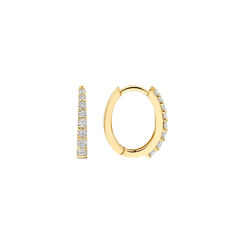Blush - 14kt geelgouden klapcreolen, ovaal 14x2mm, bezet met zirconia's - 7341YZI