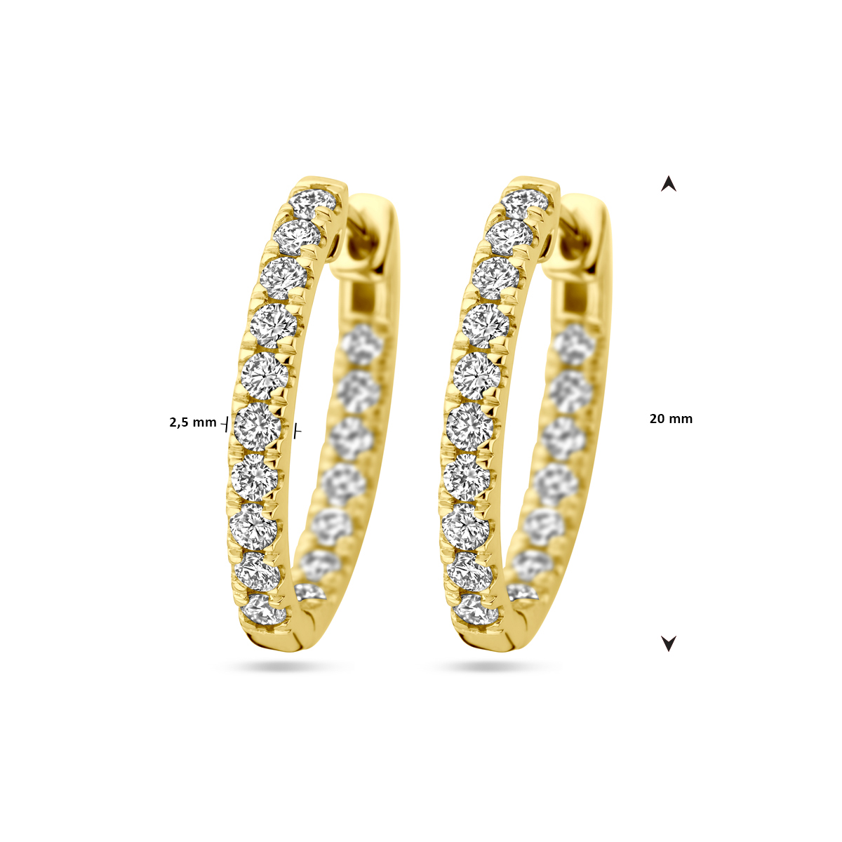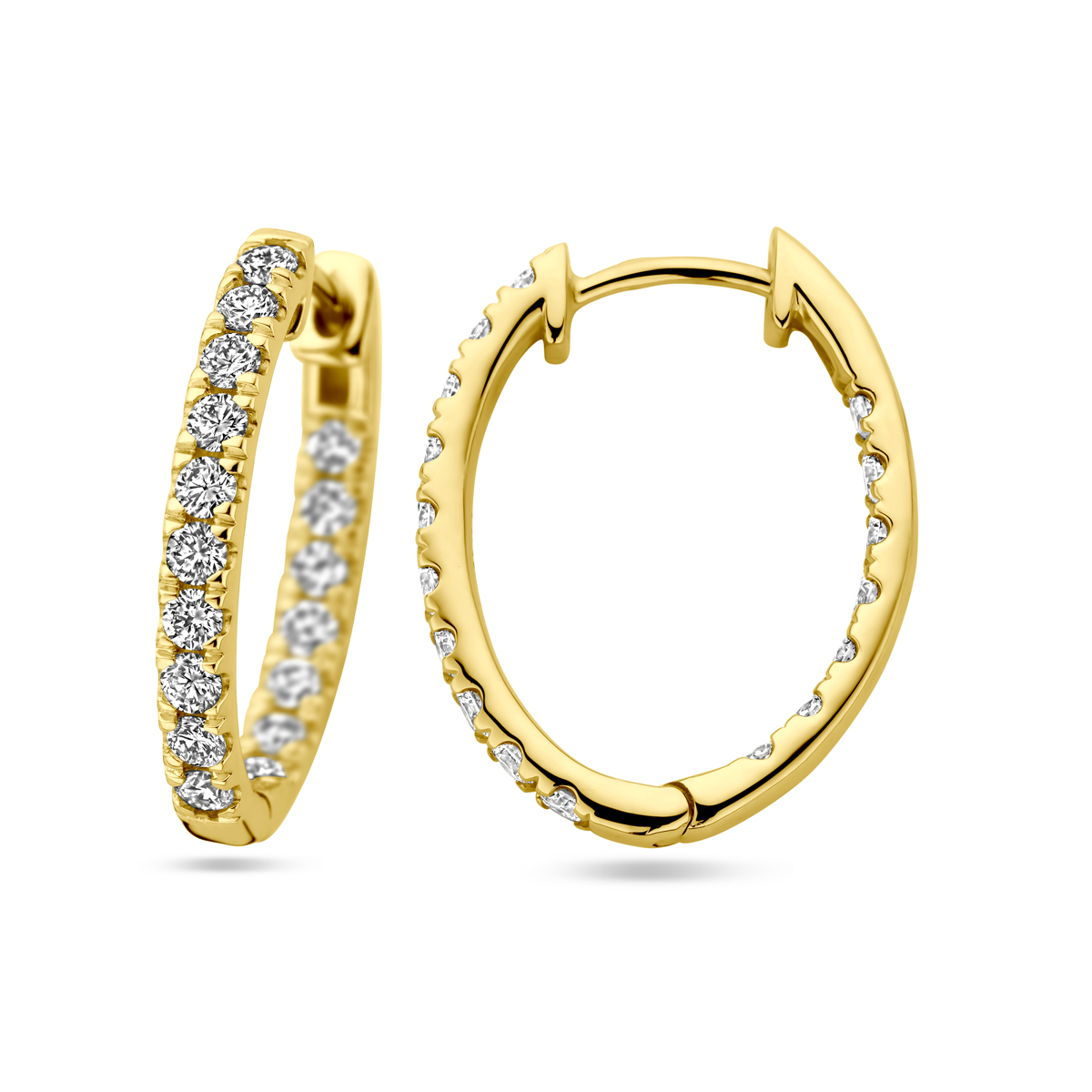 Huiscollectie - 14k Geelgouden klapoorringen uitgevoerd met lab grown diamant. De klapoorringen hebben een diameter van 20mm. Het totale diamantgewicht is 0.96ct. - 4030476