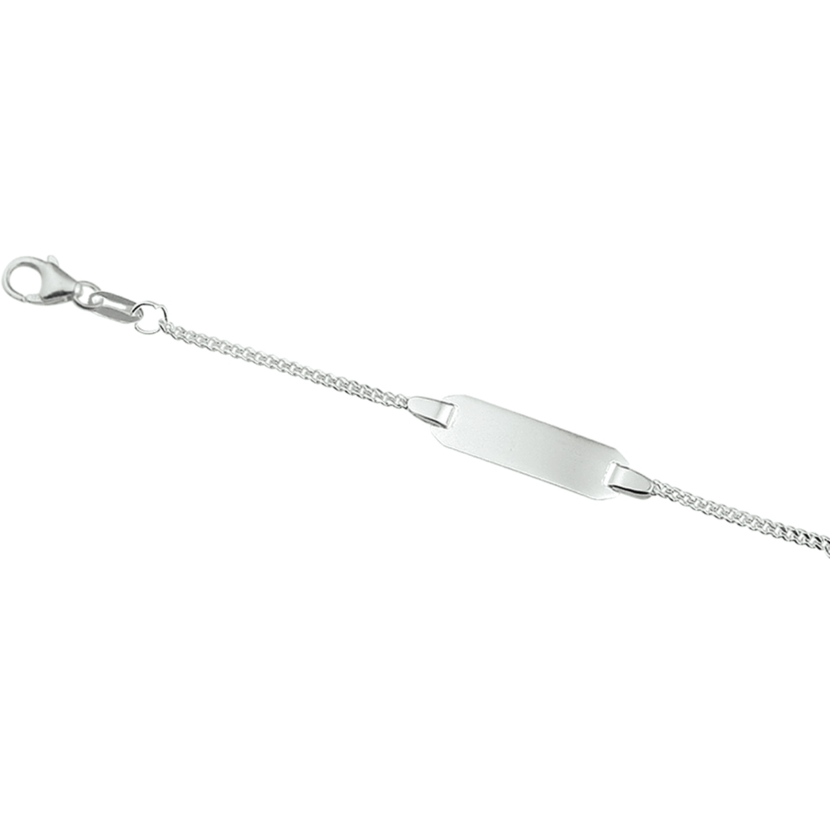Zilveren graveerarmband. De lengte bedraagt 9cm met 2cm extensie. De breedte van de graveerplaat bedraagt 6mm.