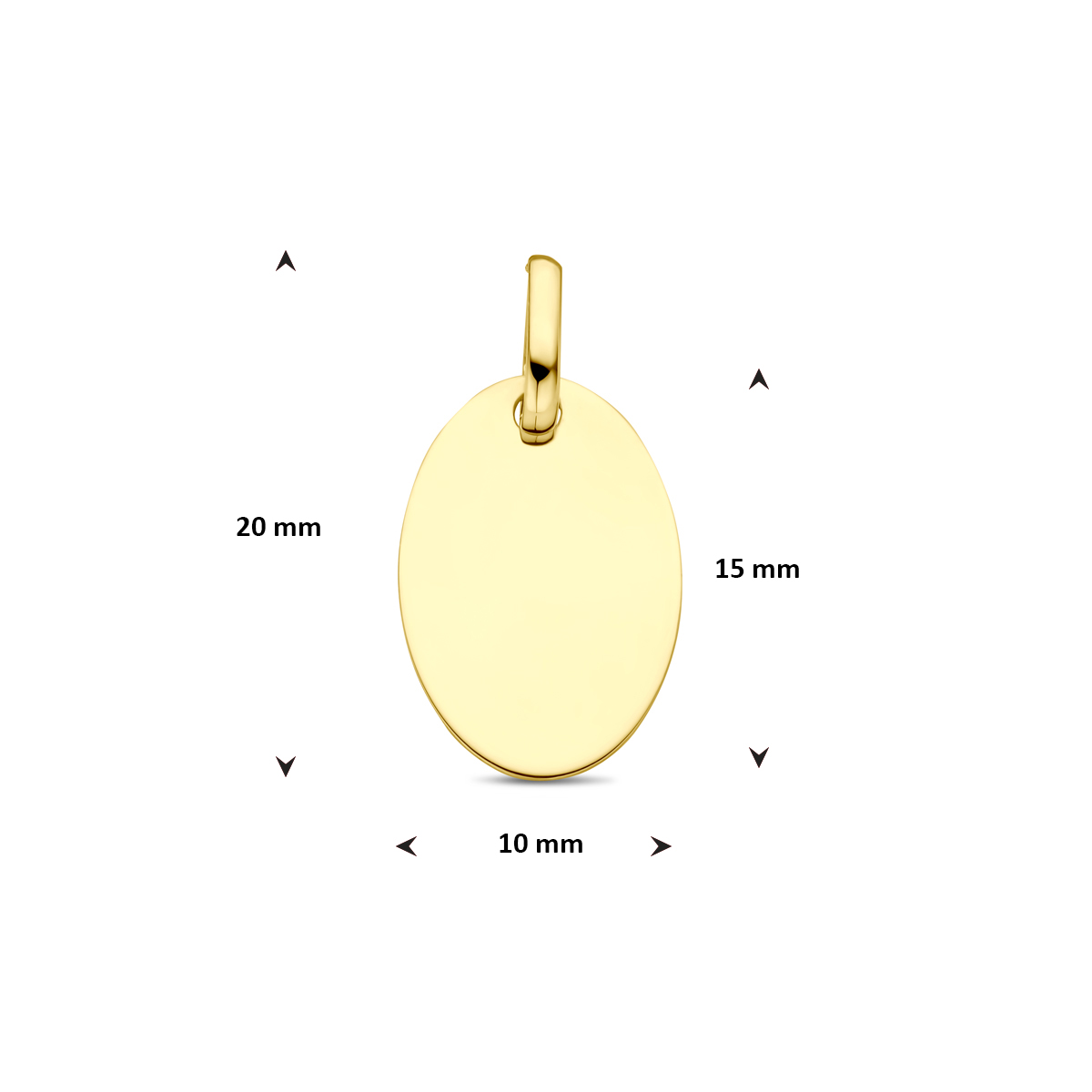 Huiscollectie - 14k Geelgouden graveerhanger in de vorm van een ovaal met een afmeting van 15x10mm. De hanger heeft een totale hoogte van 20mm. - 4022368