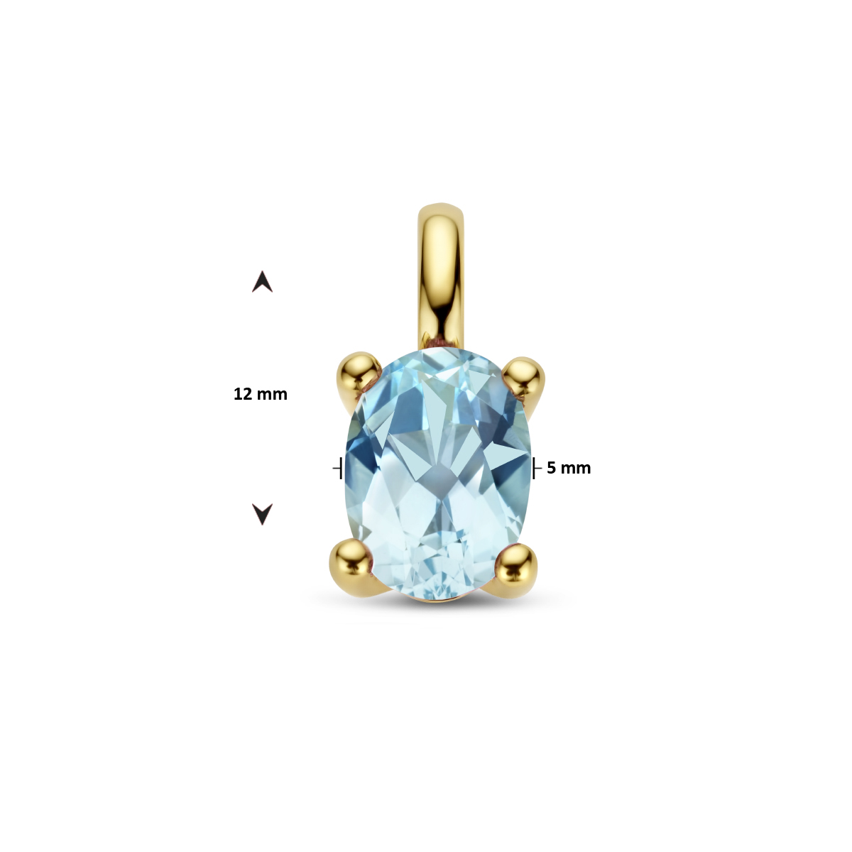 14k Geelgouden hanger uitgevoerd met schitterend blauw topaas. De topaas heeft een steengewicht van 1.10ct.