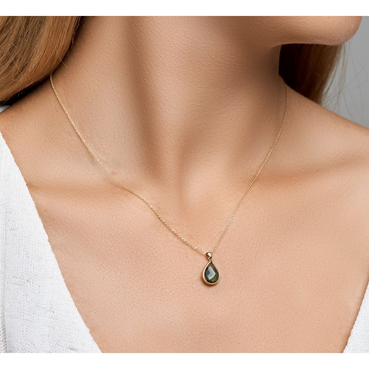 Huiscollectie - Geelgouden druppel hanger met Groene Kwarts 11.5mm x 8.0mm 18x8mm hanger - 4021393