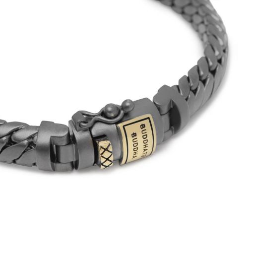 Buddha to Buddha - Ben XS Black Rhodium Gold, zilveren armband met zwart Rhodium en gouden logo op de sluiting 18cm J070BRG D - 001K01070B104