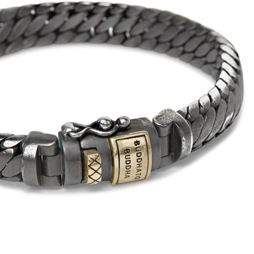 Buddha to Buddha - Ben XS Black Rhodium Gold, zilveren armband met zwart Rhodium en gouden logo op de sluiting 21cm J070BRG F - 001K01070B106