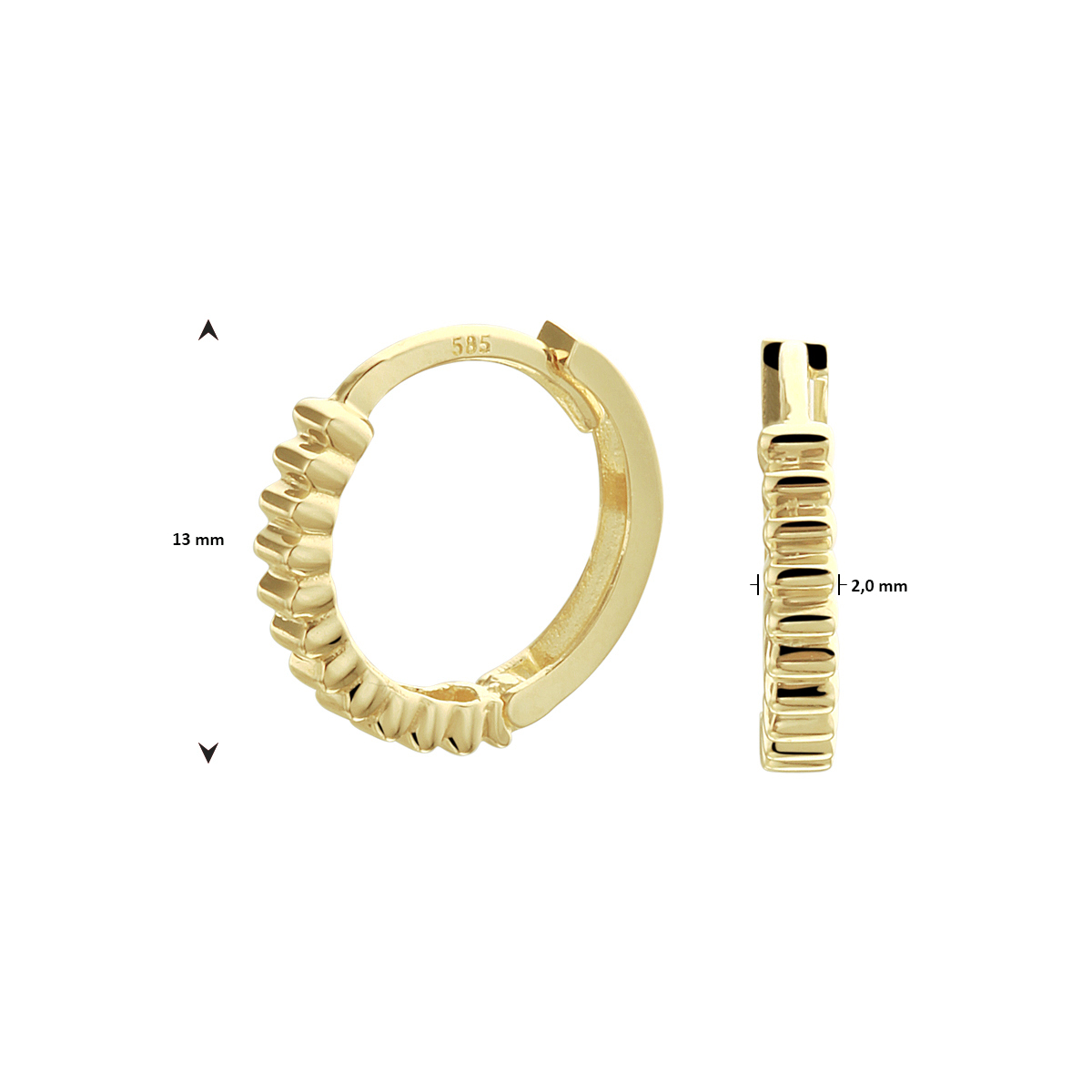 14k Geelgouden klapoorringen. De oorringen hebben een afmeting van 13x2mm.