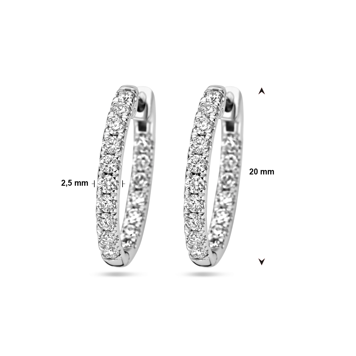 14k Witgouden klapoorringen uitgevoerd met lab grown diamant. De klapoorringen hebben een diameter van 20mm. De totale diamantgewicht is 0.96ct.