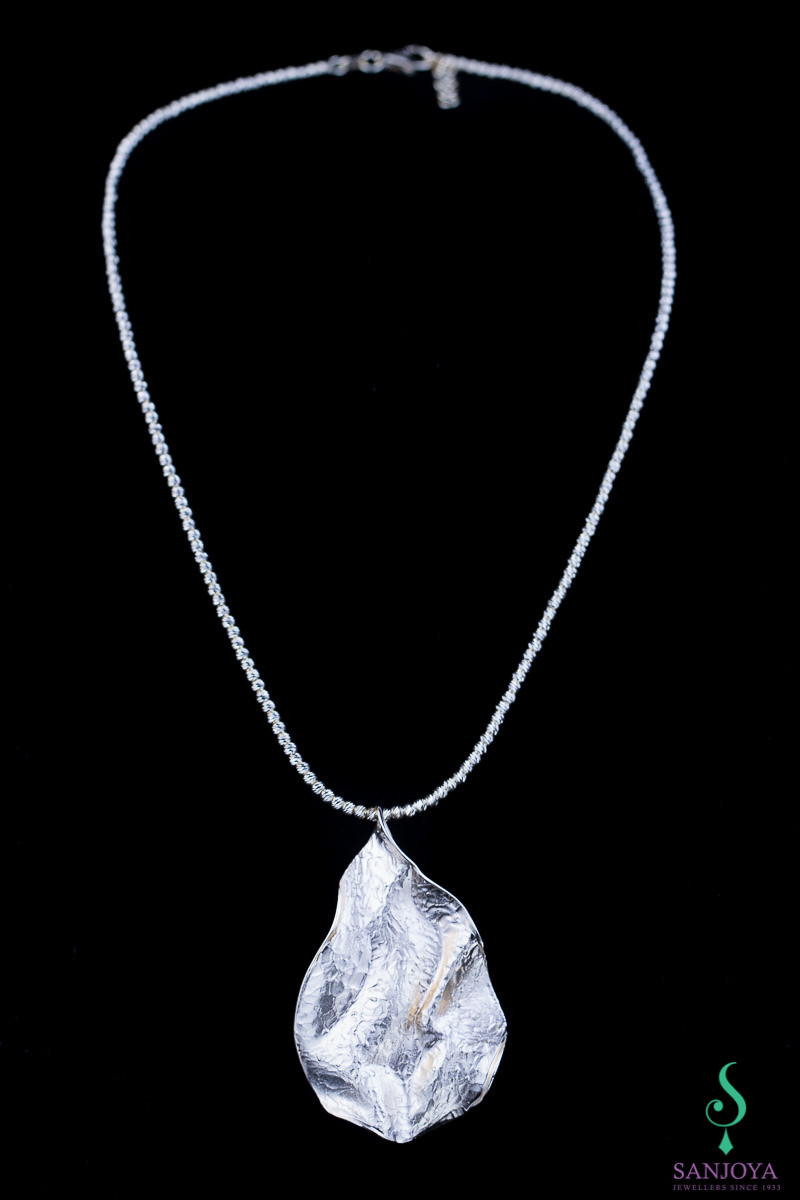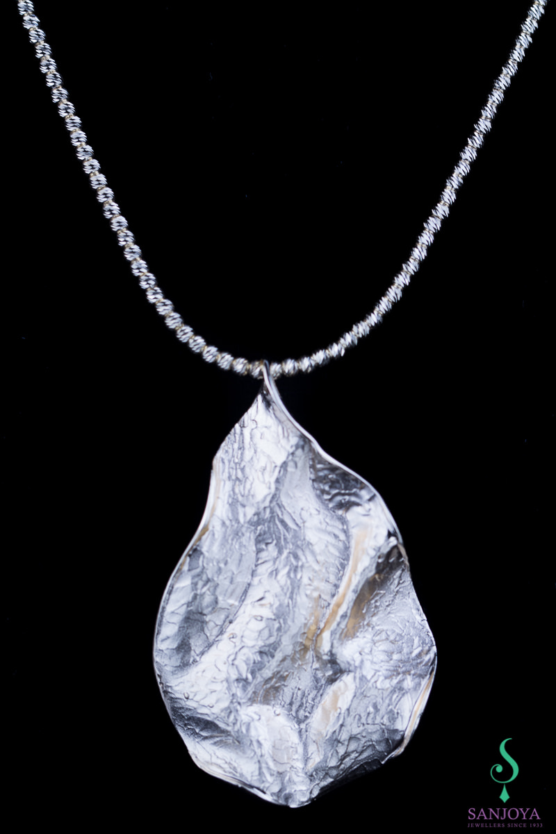 Sanjoya - Zilveren hanger. Een mooie hanger van mat zilver in de vorm van een golvend blad. excl. collier - L0319001.1D