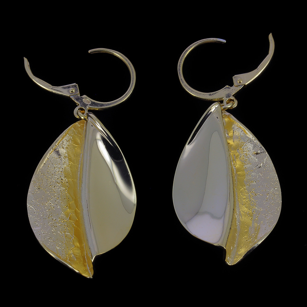 Sanjoya - Lange oorbellen van deels mat en deels gepolijst verguld zilver. - L112009