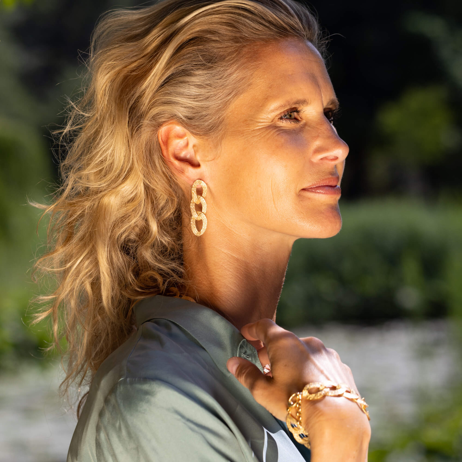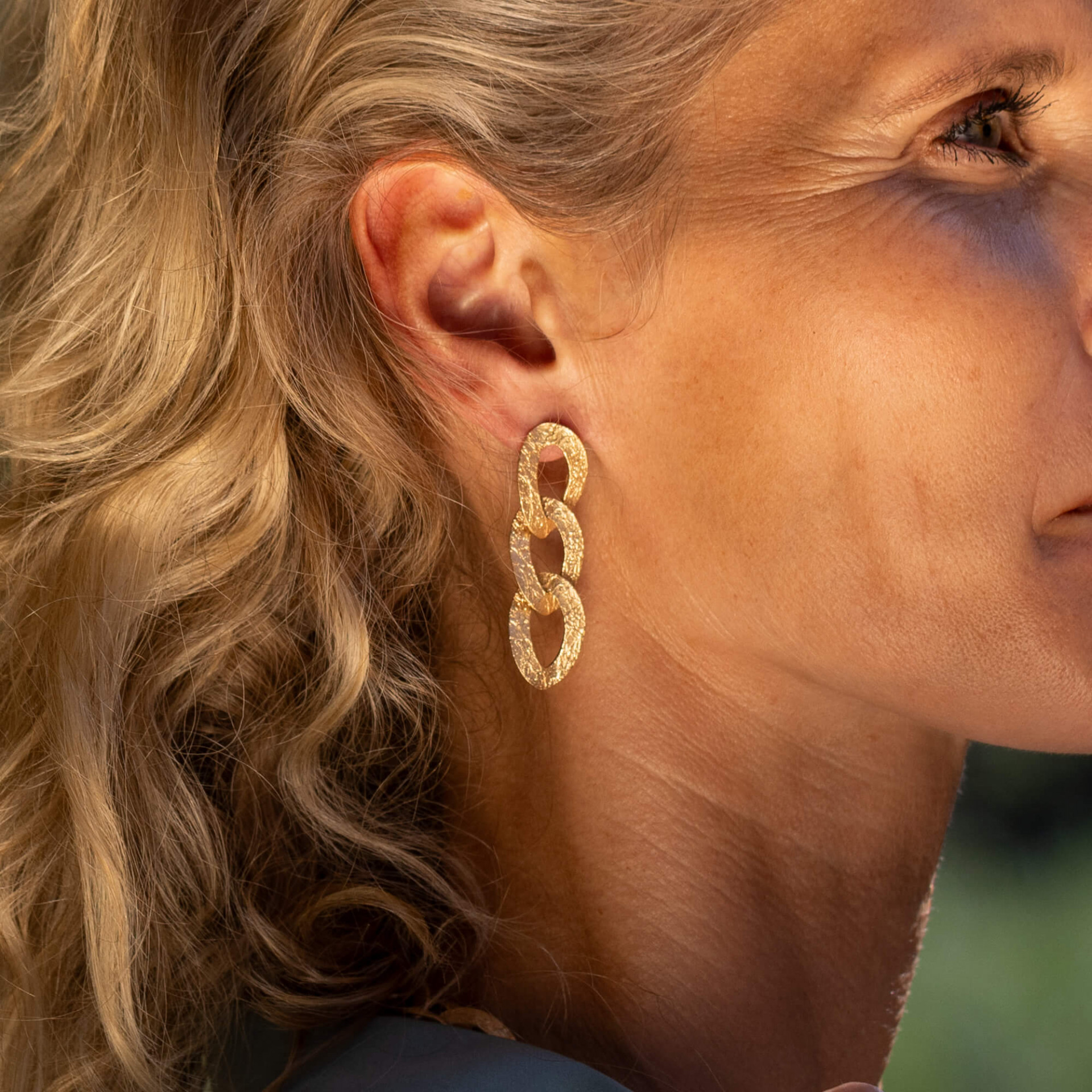Sanjoya - Schitterende Sanjoya schakeloorbellen van sterling zilver verguld, ovaalvormig met 3 open schakels. 30x60mm - L1122005.2