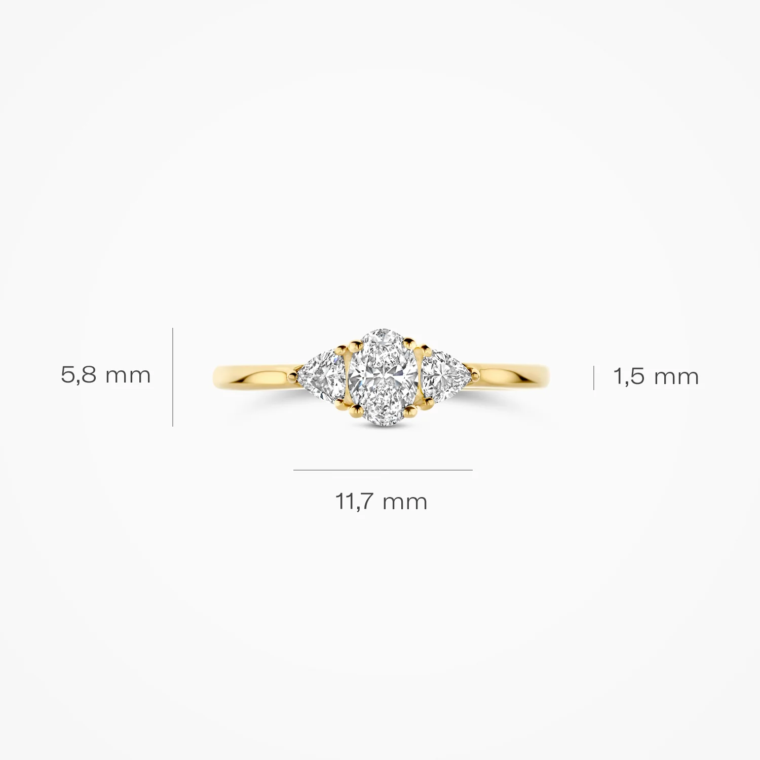 Blush Lab Diamonds - 14kt geelgouden damesring bezet met 3 labgrown diamanten - LG1039Y/54