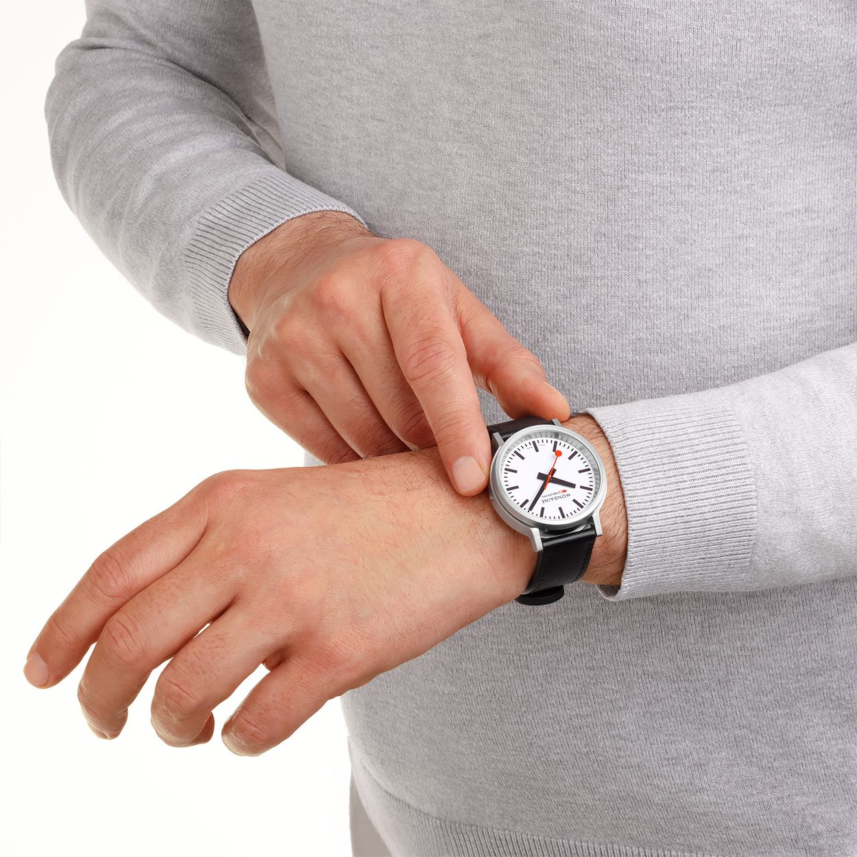 The Official Swiss Railway Watch. Gebaseerd op de officiële stationsklok van de Zwitserse spoorwegen, is 30 jaar geleden de horlogelijn onder het merk Mondaine opgezet. Zwitserse kwaliteitsuurwerken, net zo punctueel als de Zwitserse treinen. Een echte design klassieker met een unieke wijzerplaat, en de wereldberoemde rode secondewijzer met bolletje. Herkenbaar uit duizenden.
