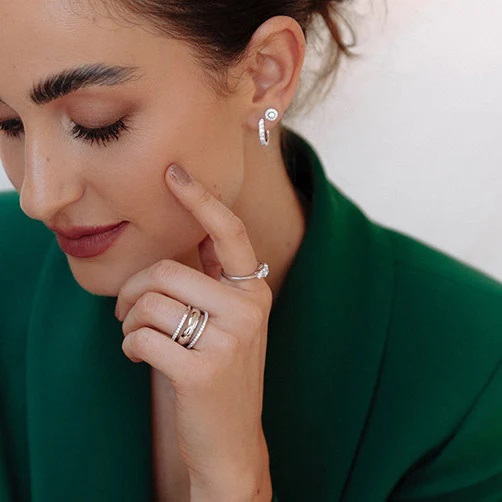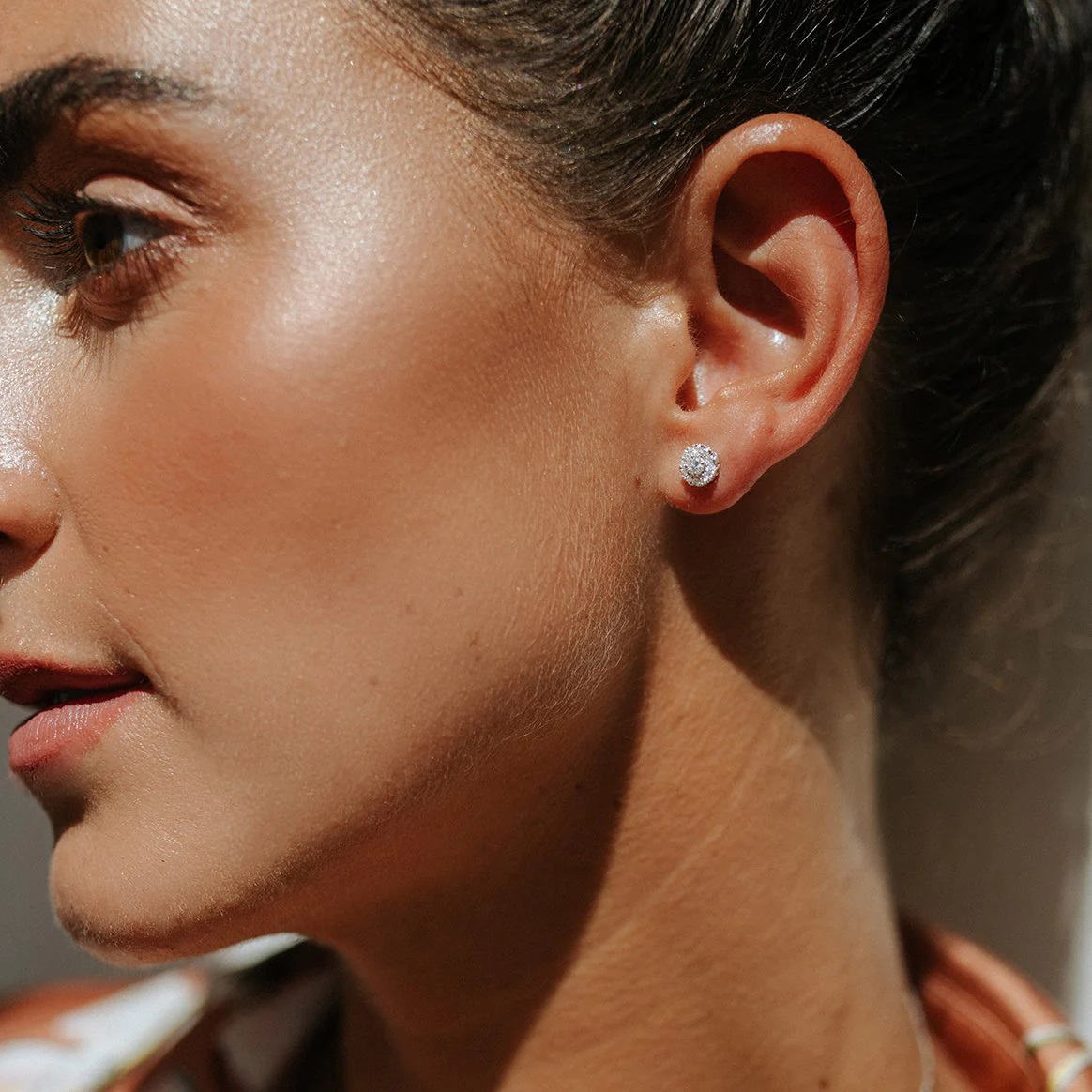Aurore - Emma 18kt witgouden entourage oorstekers bezet met briljant geslepen labgrown diamanten