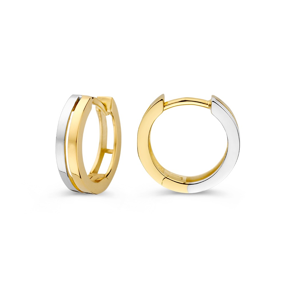 Excellent Jewelry - 14kt bicolor geel/witgouden klapcreolen 12.5x3mm - OB408218