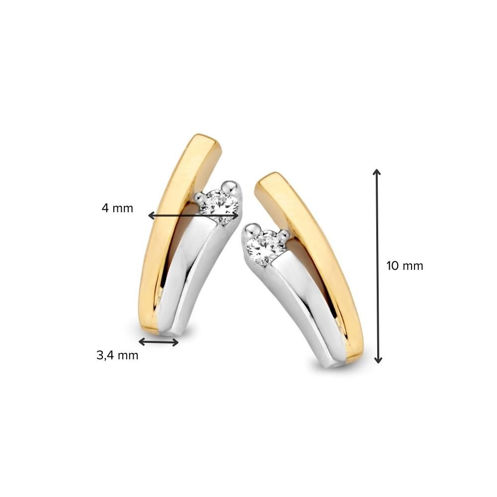 Excellent Jewelry - 14kt bicolor geel/witgouden oorstekers bezet met briljant geslepen diamanten, 10x4mm - OG415091