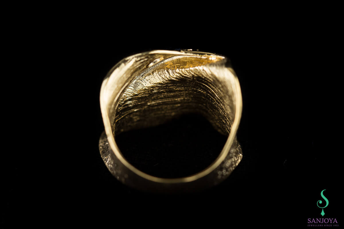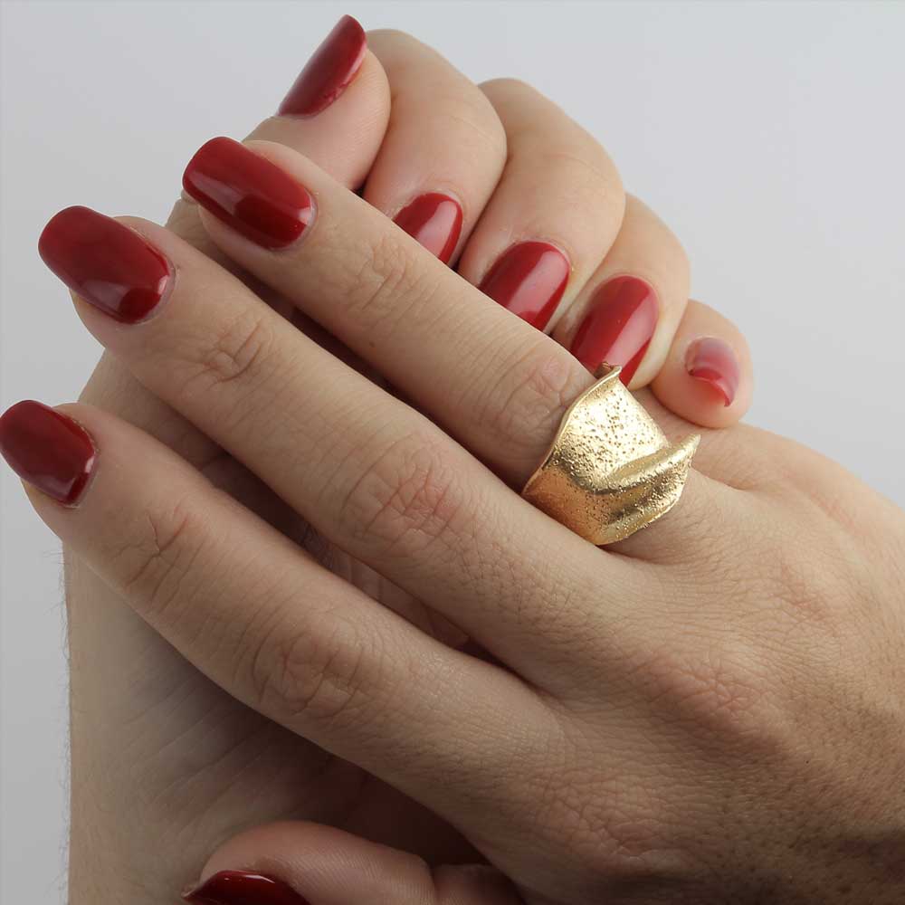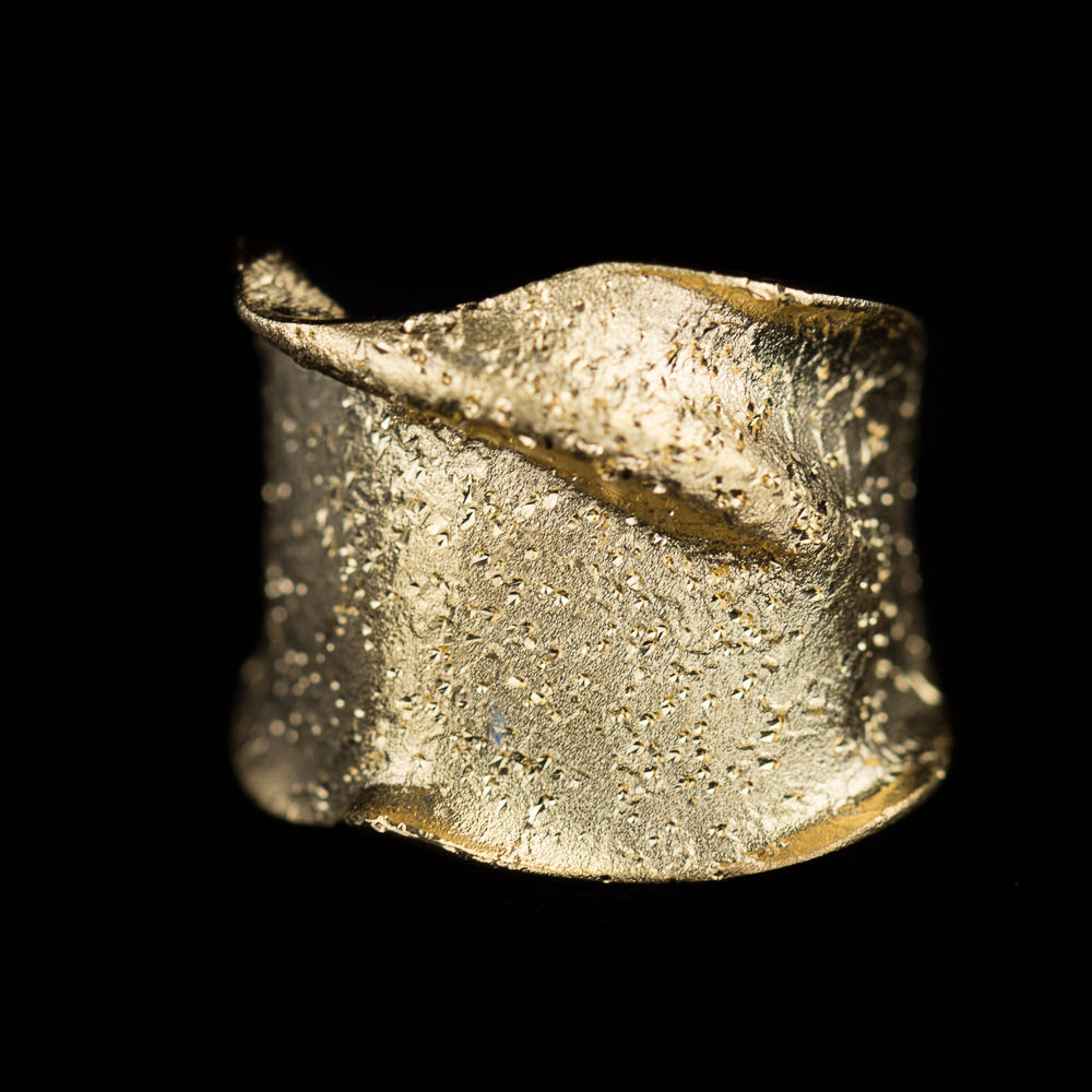 Sanjoya - Leuke en smalle ring van verguld sterling zilver, golvend van vorm en gediamanteerd. - PRE0217013.56