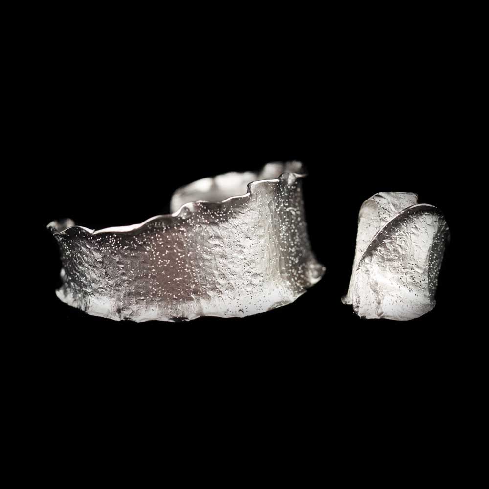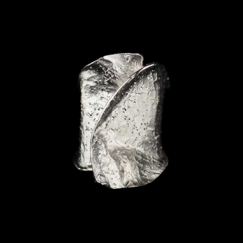 Sanjoya - Brede gediamanteerde zilveren ring uit de golvende collectie, met twee overlappende delen. - PRE1017002.54