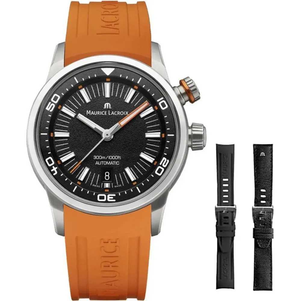 Maurice Lacroix - Pontos S Diver heren automaat met 2 extra banden zwart caoutchouc & nylon/leder zwart
