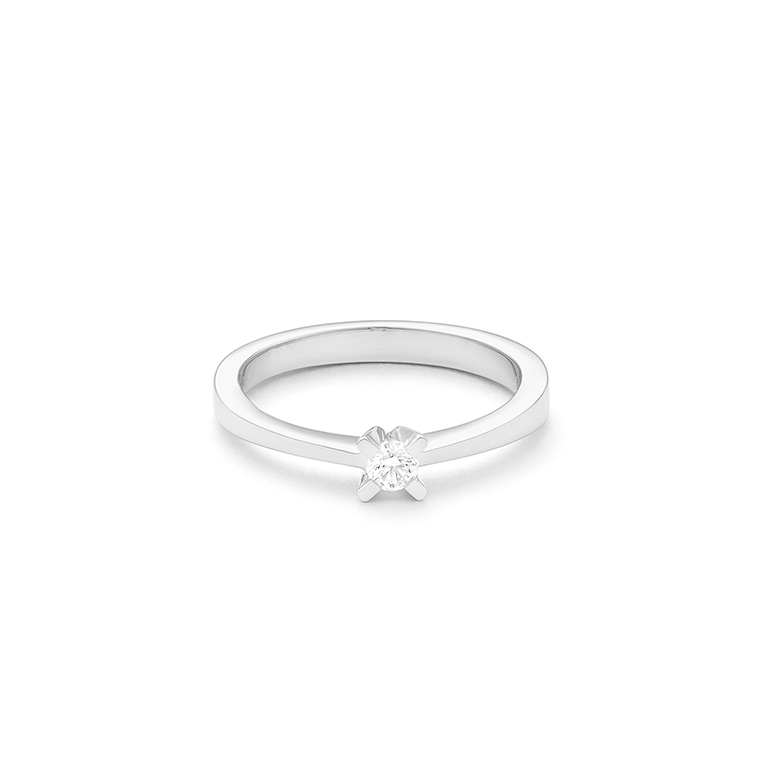 Facet 14kt witgoud bezet met briljant geslepen diamant, in een 4-pootschaton
