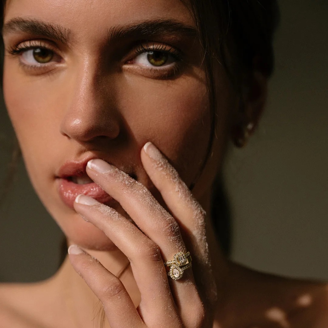 Aurore - Ivy 18kt geelgouden dames ring bezet met emerald en briljant geslepen labgrown diamanten.