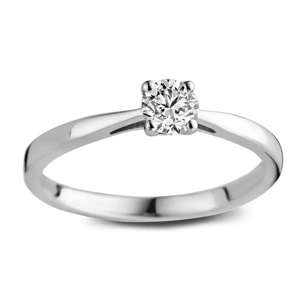 Aurore - Olivia 18kt witgouden dames ring, solitair bezet met 1 briljant geslepen labgrown diamant