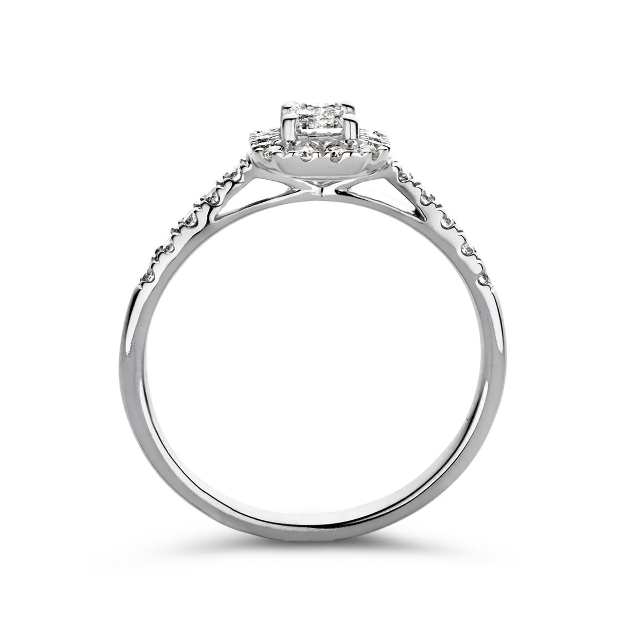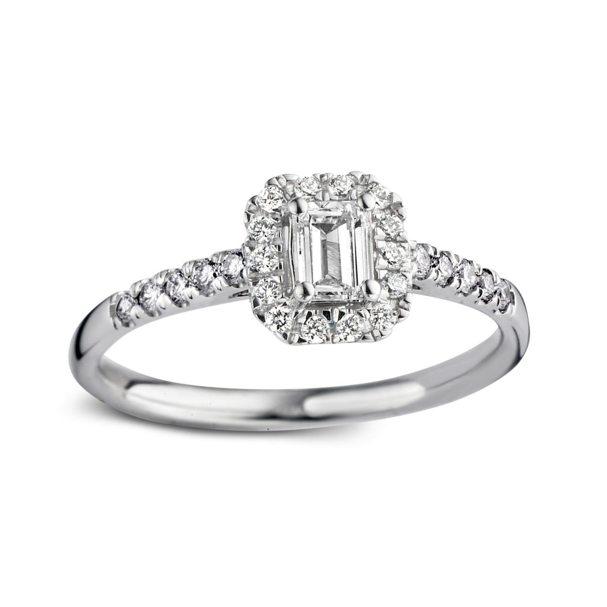 Aurore - Ivy 18kt witgouden dames ring, bezet met emerald en briljant geslepen labgrown diamanten