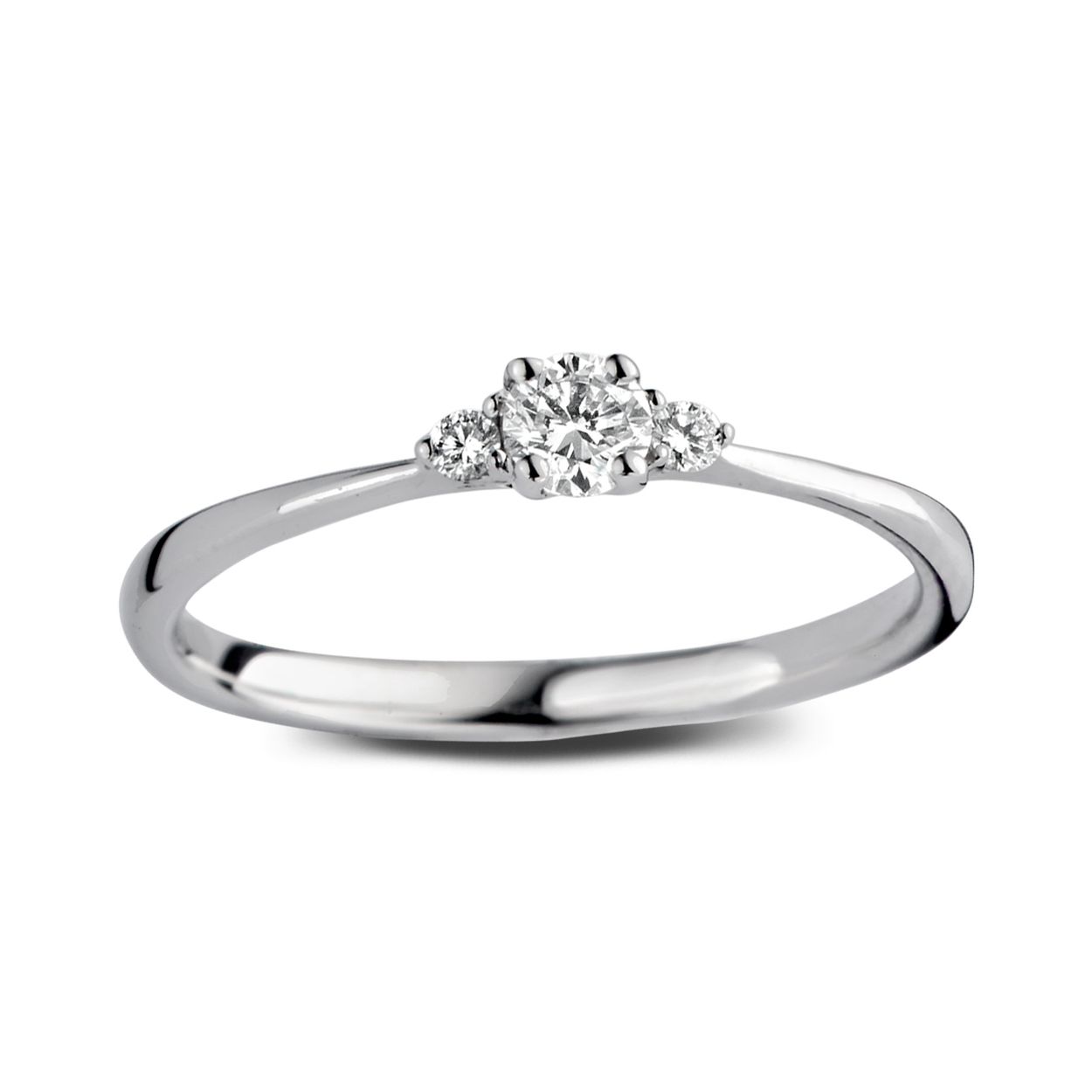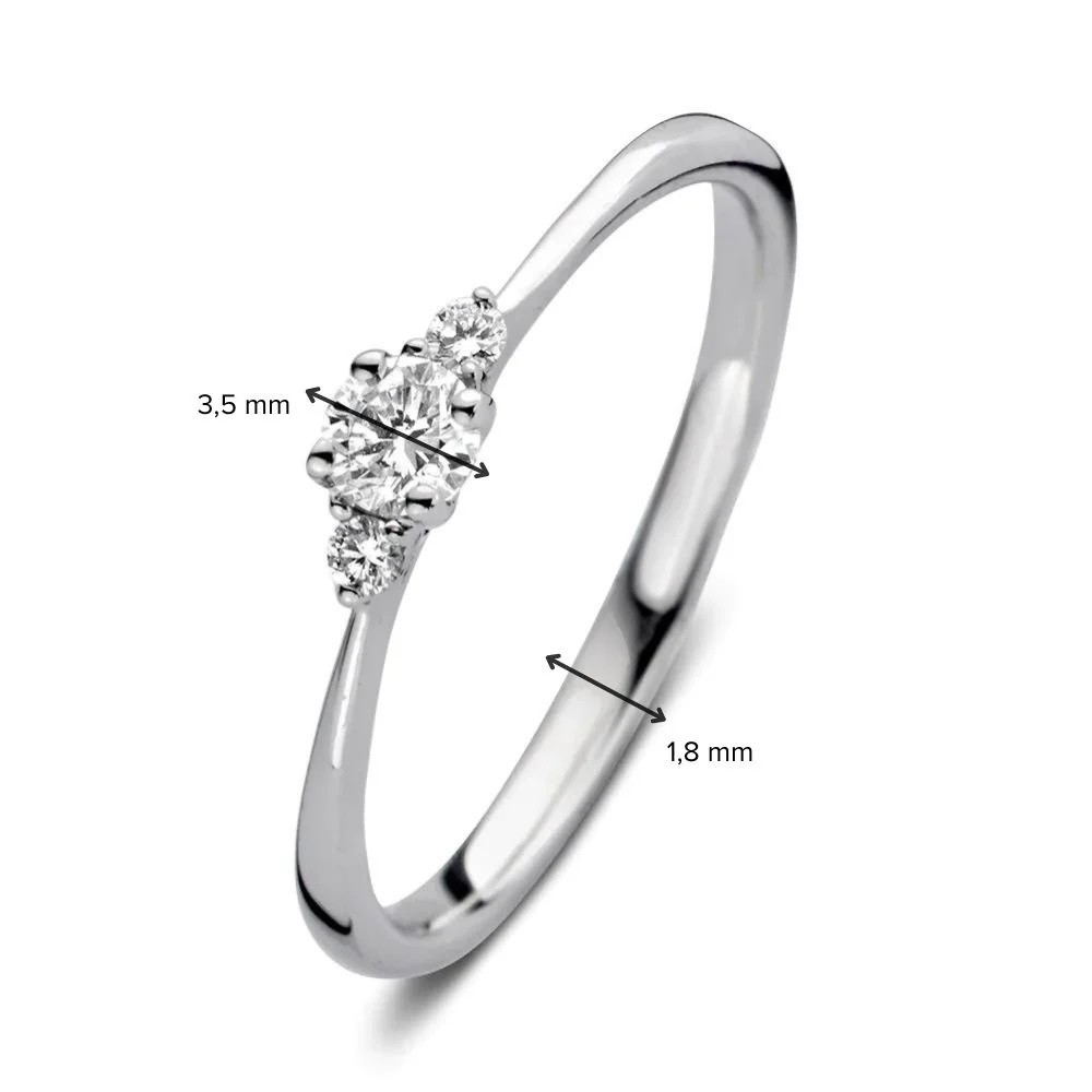 Aurore Jewelry - Witgouden driesteens ring 'Alix' (middensteen 0.15 crt.) bezet met briljant geslepen labgrown diamanten
