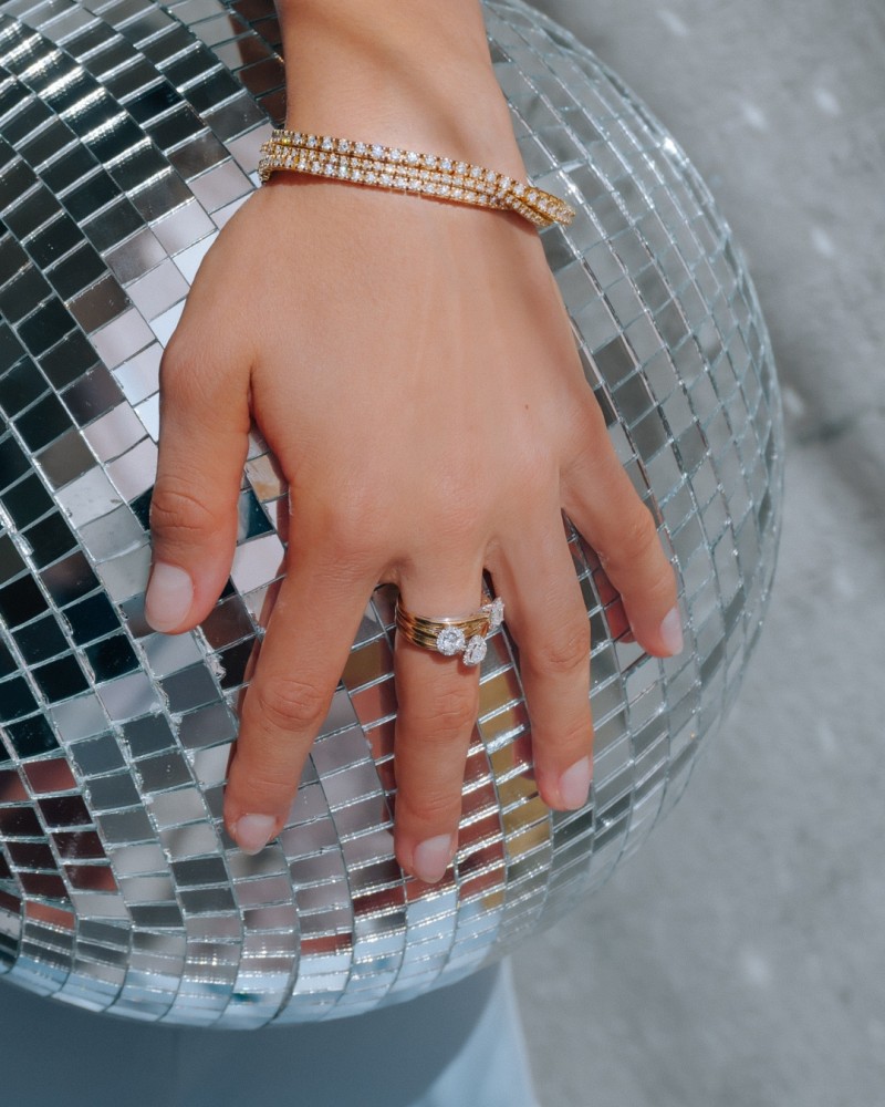 Excellent Jewelry - Bicolor geel/witgouden damesring bezet met briljant geslepen diamanten - RG417975-54