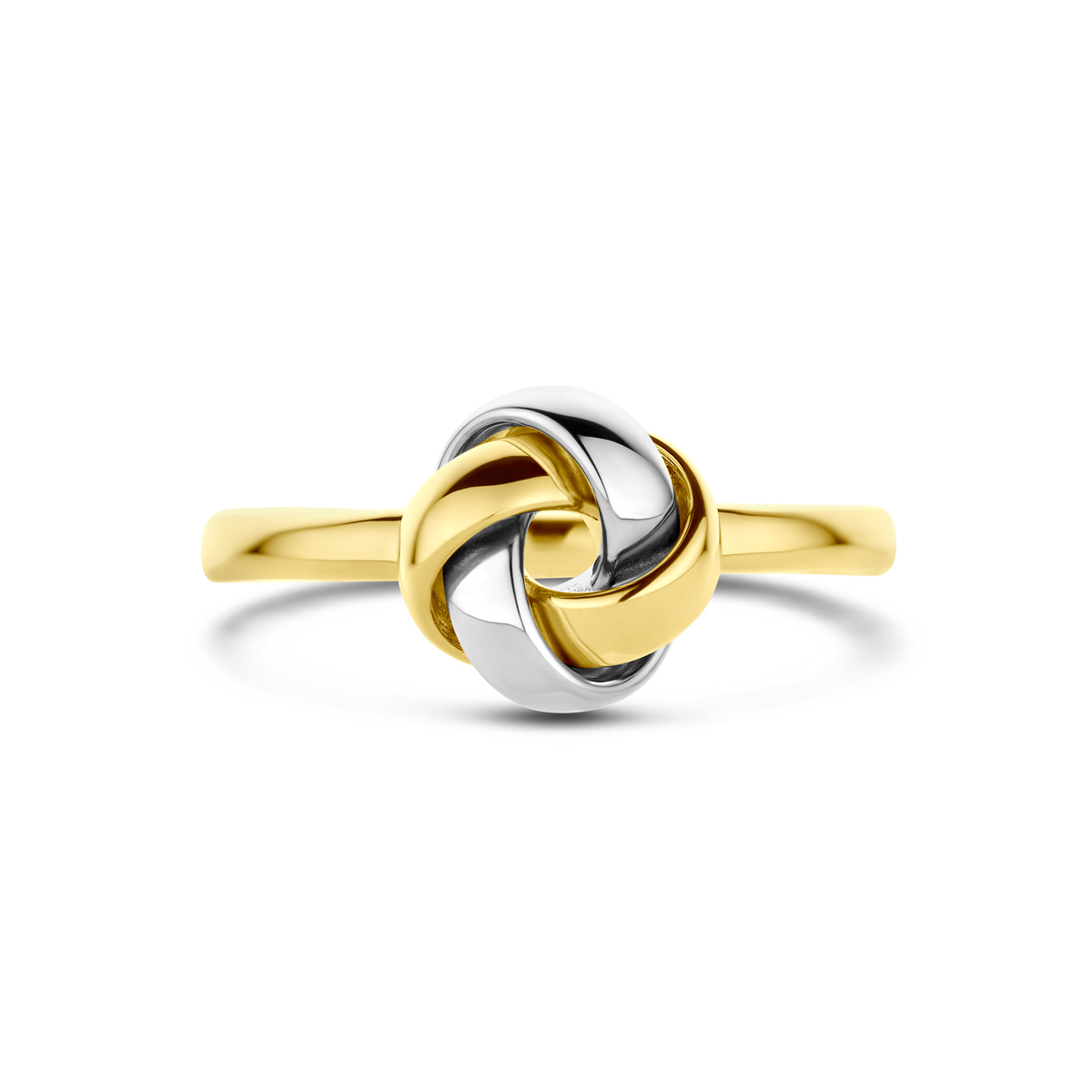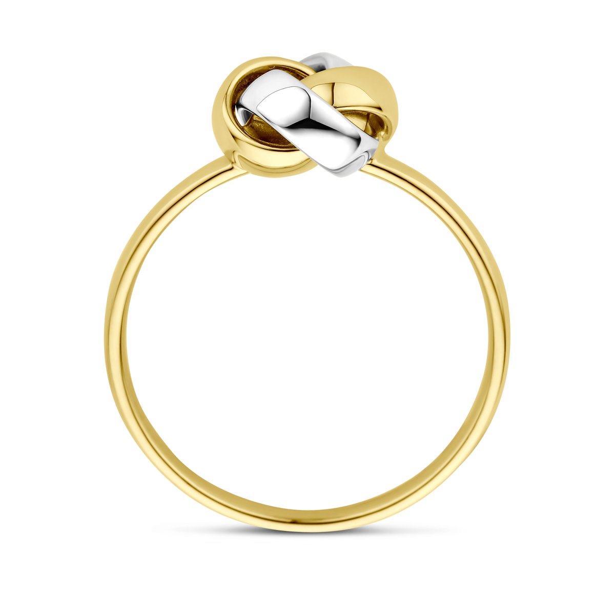 Huiscollectie -14k Bicolor geel- en witgouden ring uitgevoerd in de vorm van een knoop. De ring heeft een breedte van 9mm. maat: 16.5 - 4208991