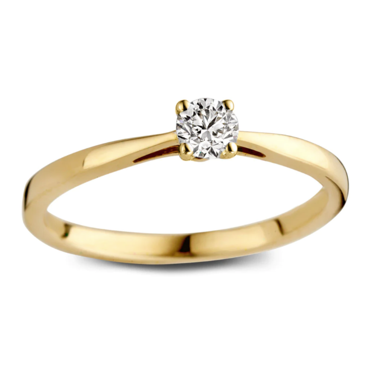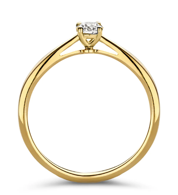 Aurore - Olivia 18kt geelgouden dames ring, solitair met 4 pootschaton bezet met briljant geslepen labgrown diamant