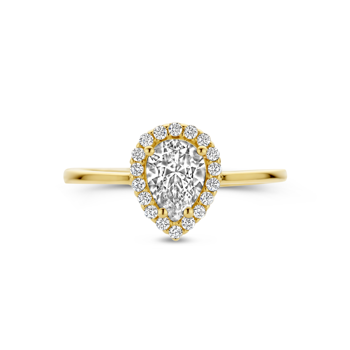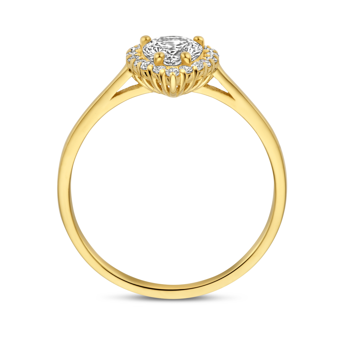 Huiscollectie -14k Geelgouden ring uitgevoerd met zirkonia. De ring heeft een breedte van 10mm. Maat: 16 - 4031631
