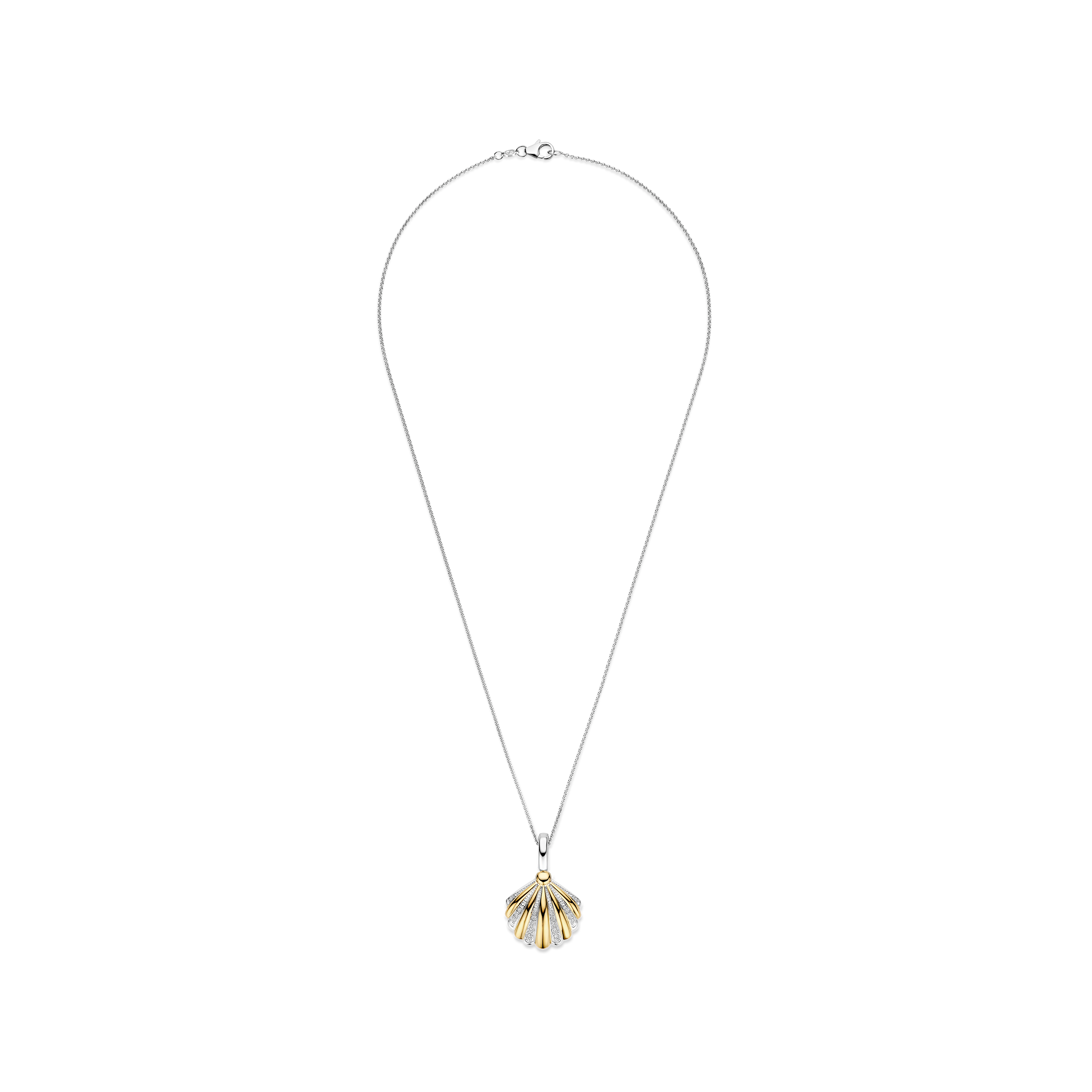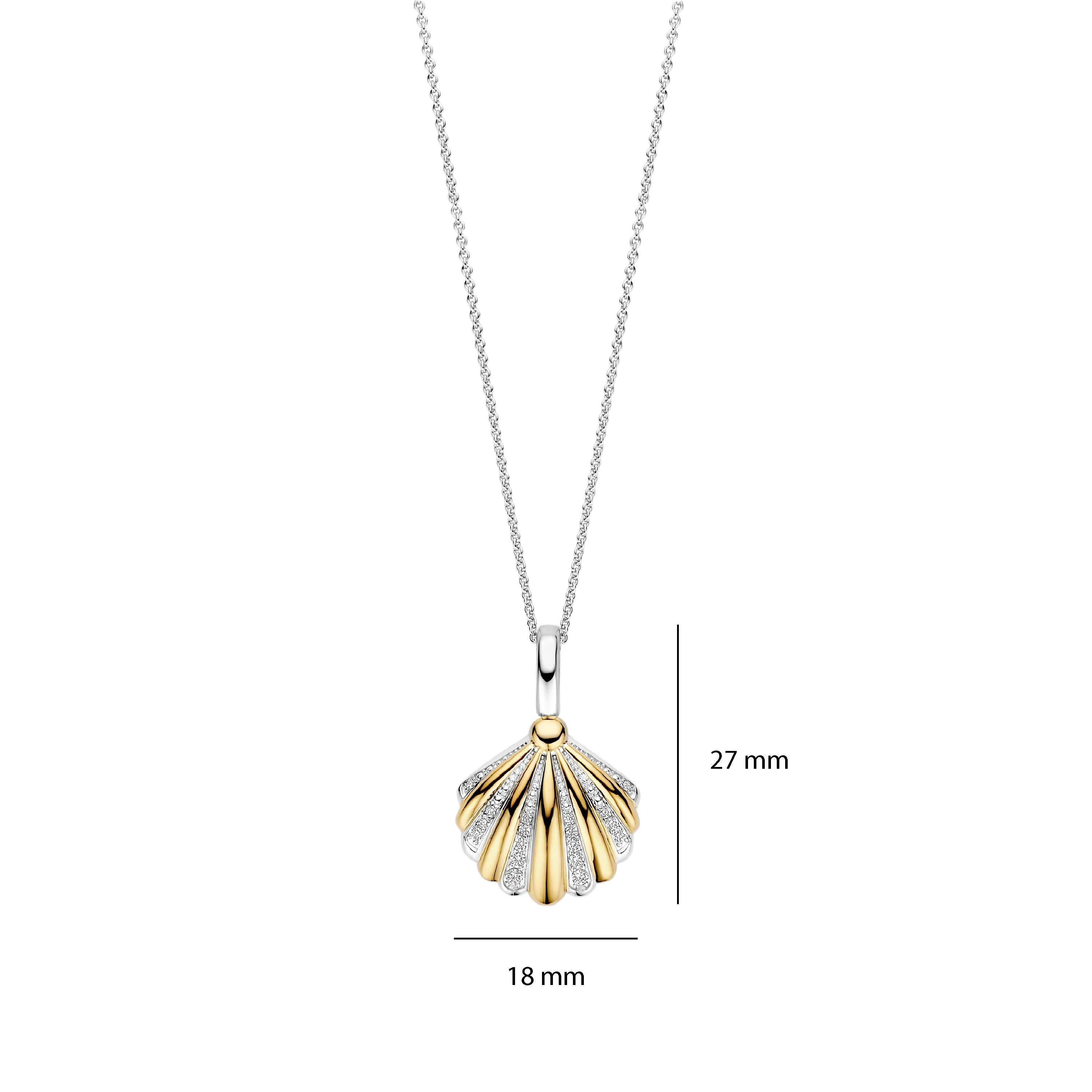 Ti Sento Milano - Zilveren Schelp hanger bezet met zirconia's, deels verguld, incl collier 45cm - 6863ZY