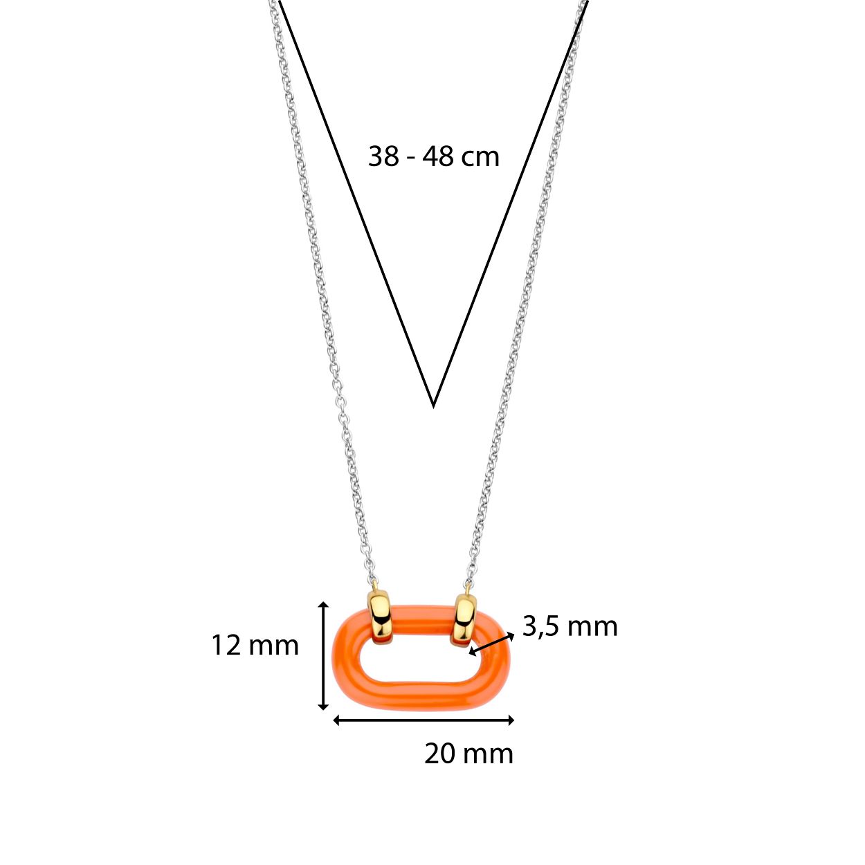 Het collier heeft een standaardlengte van 38 cm en heeft een verlengstuk van 10 cm. Hierdoor kan je het collier op 5 verschillende lengtematen dragen, op 38 cm, 40 cm, 42 cm, 45 cm en 48 cm.