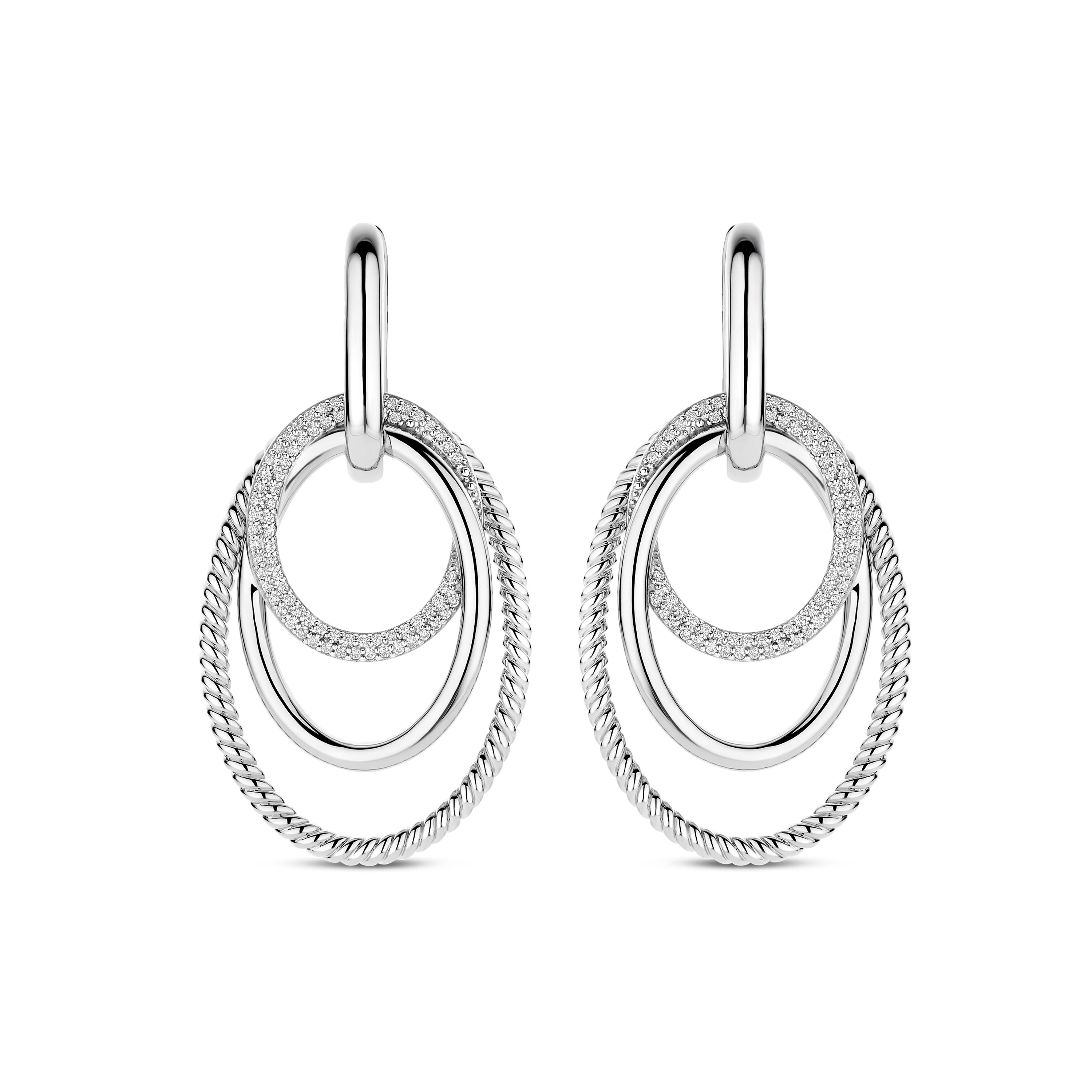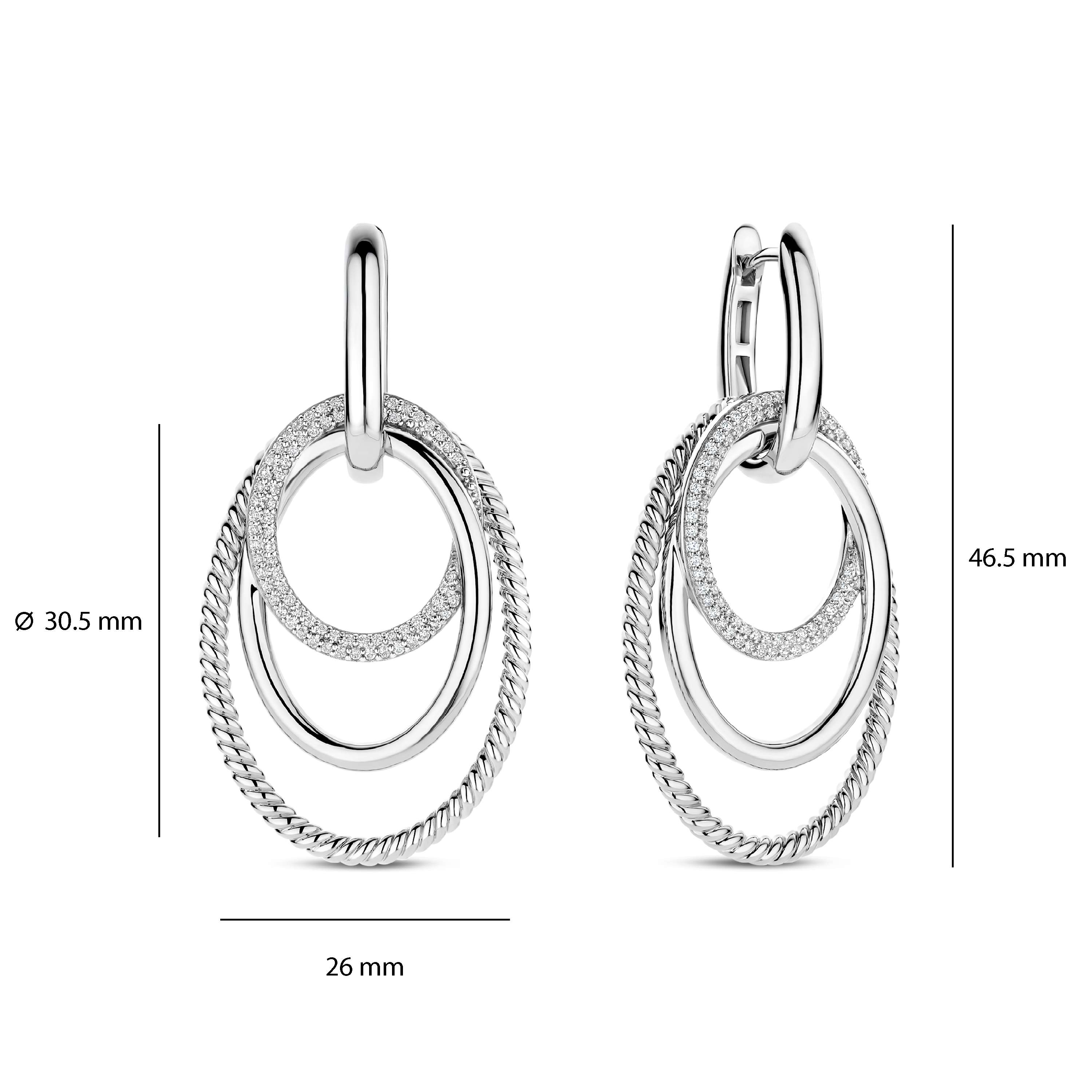 Ti Sento Milano - Zilveren klapcreolen + aanhangers bezet met zirconia's, maat: 46.5x22mm - 78067ZI