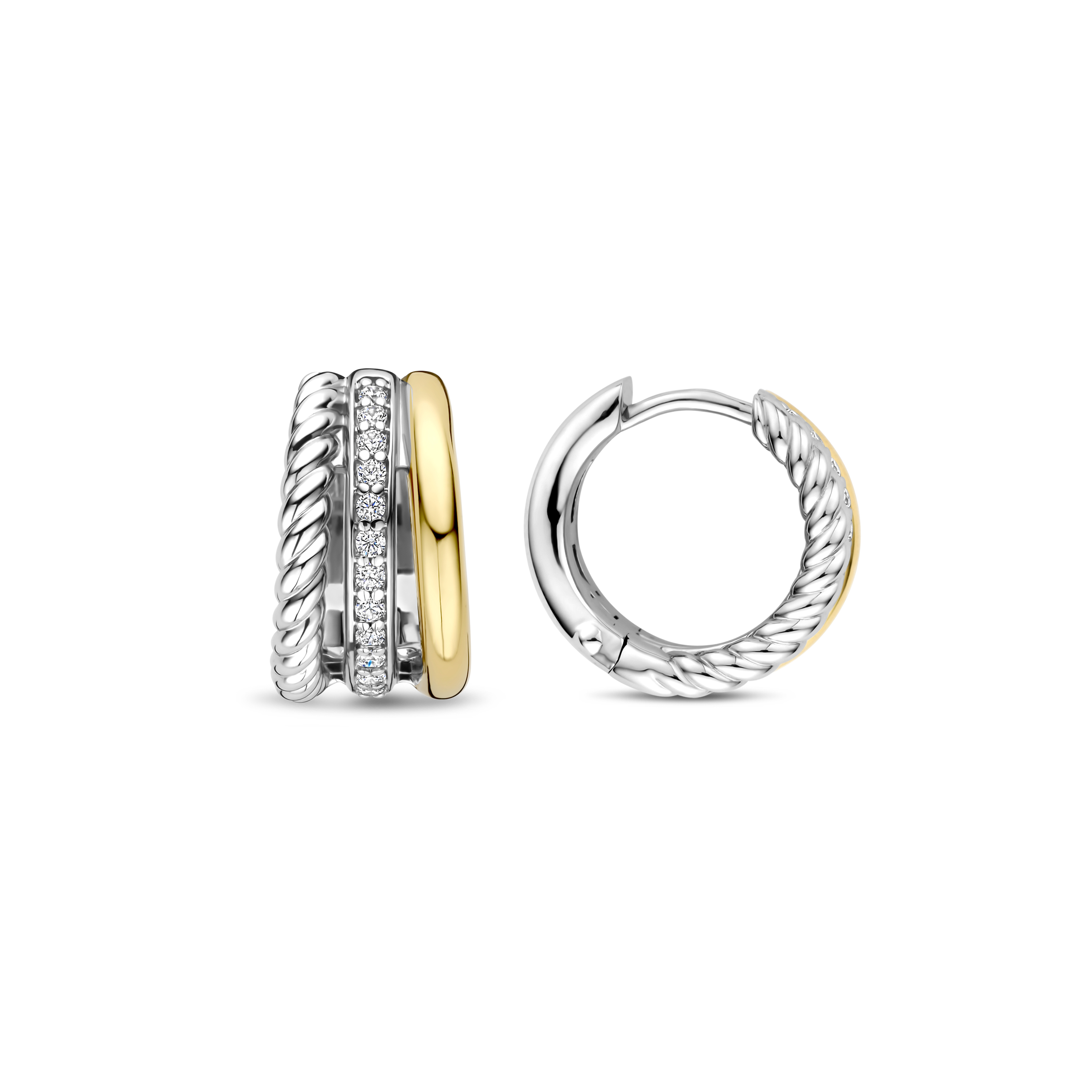 Ti Sento Milano - Zilveren klapcreolen deels verguld, bezet met zirconia's - 78025ZY