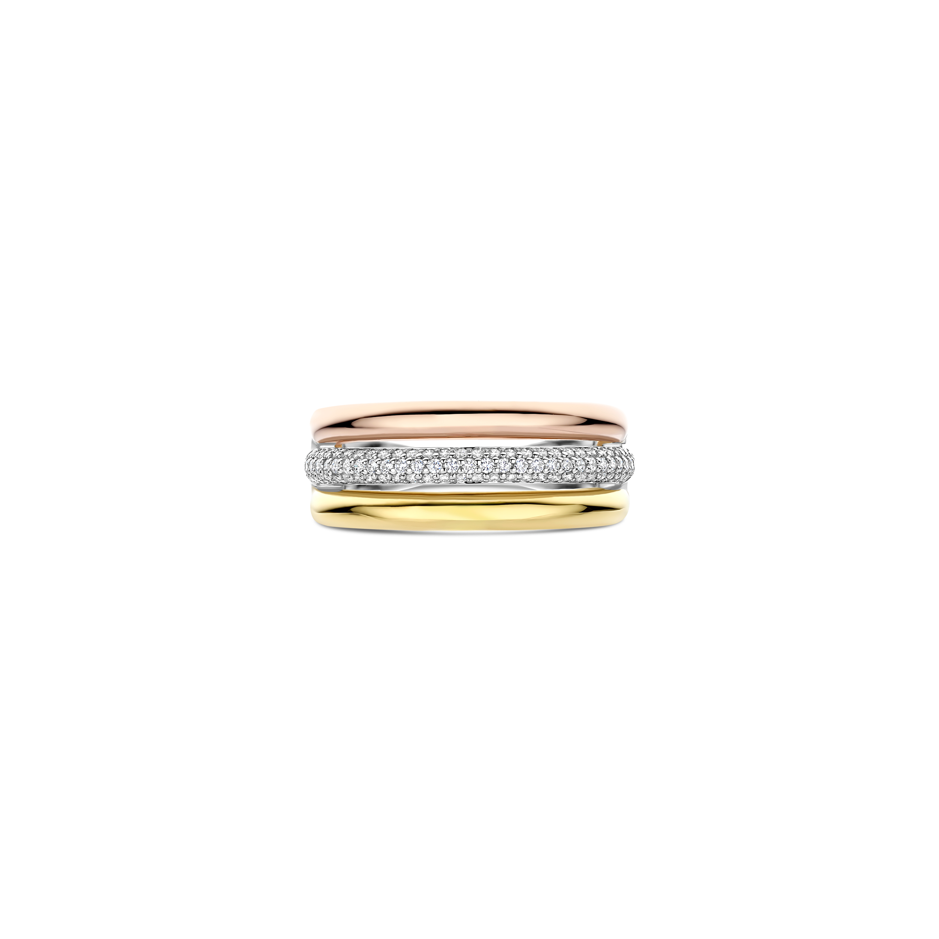 Ti Sento Milano - Zilveren damesring, tri-color en bezet met zirconia's - 12427TZ/54