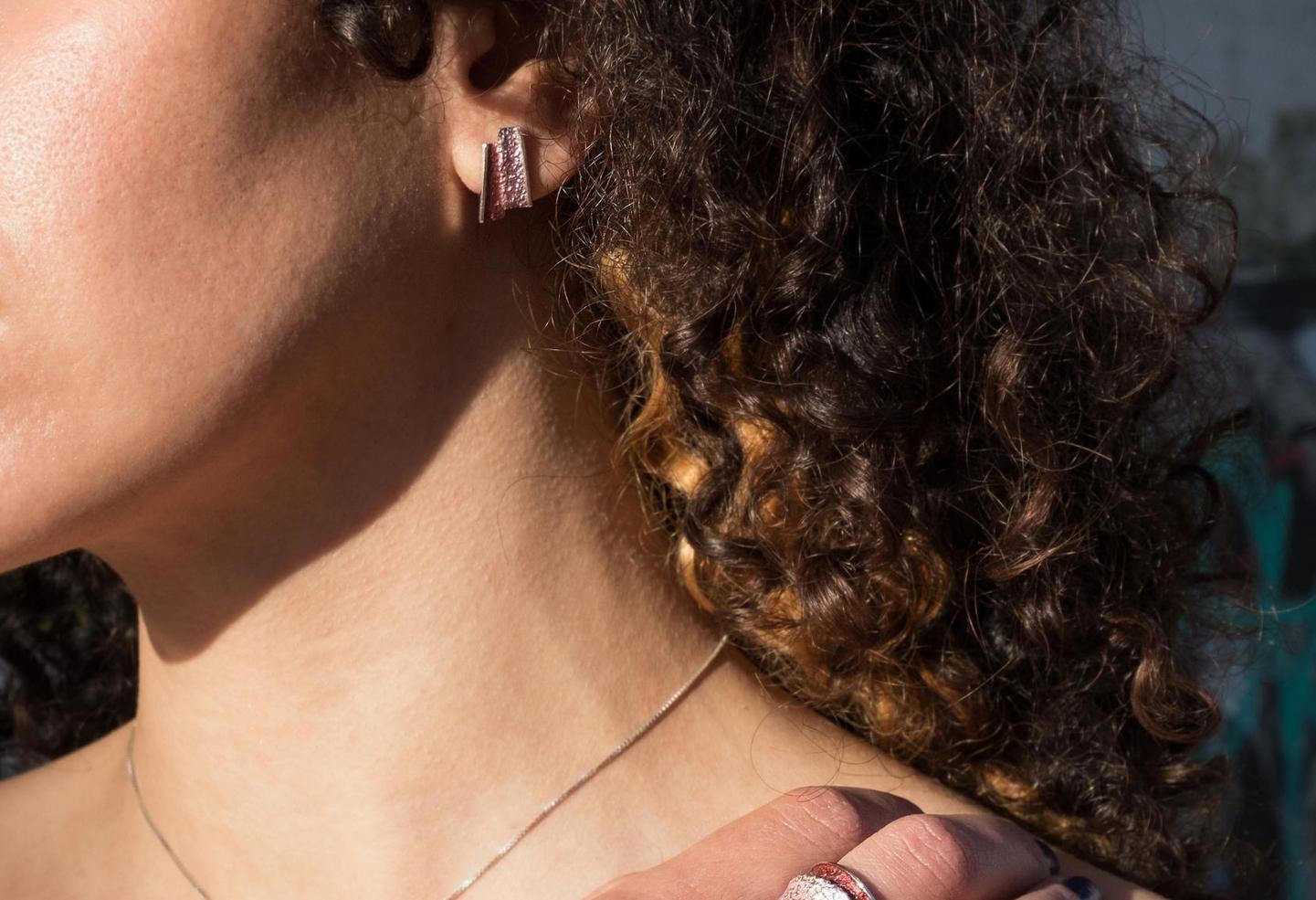 Arior Barcelona - Zilveren oorstekers, Small red Troia, 18x9mm - 1143914XPP