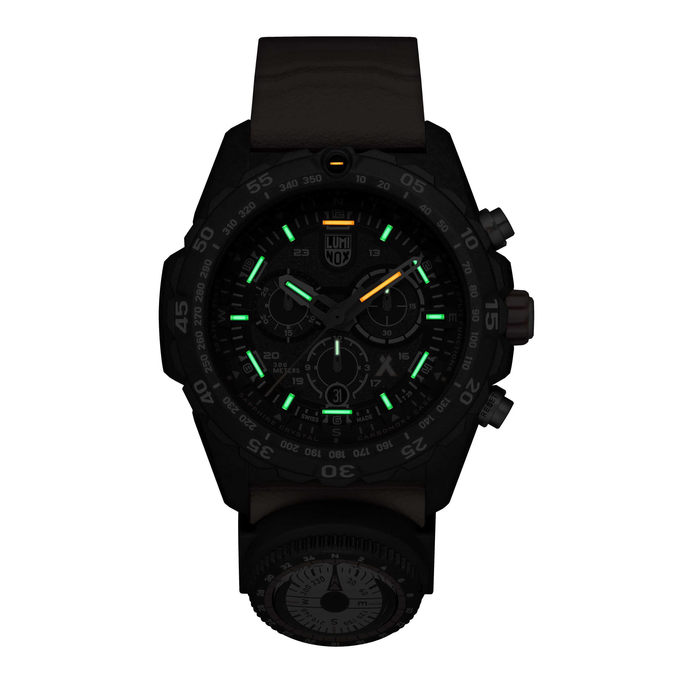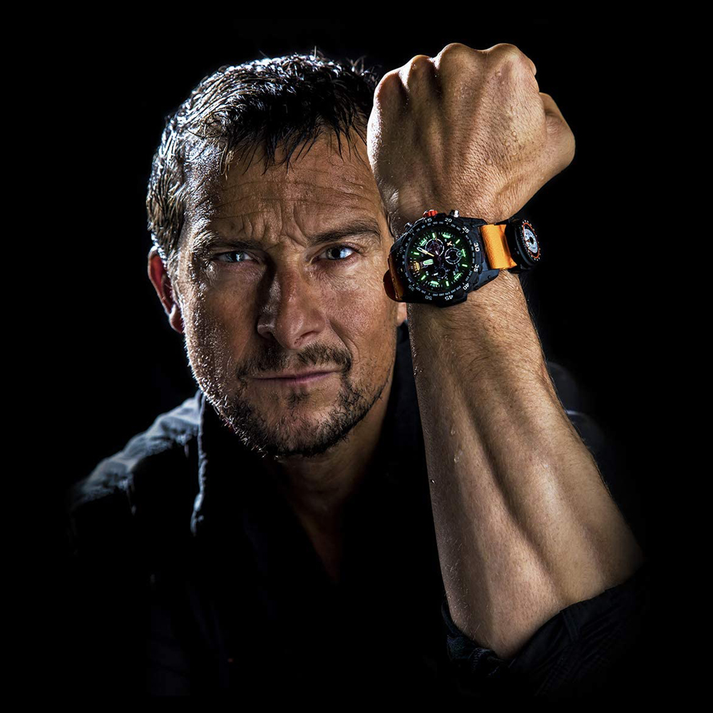 Luminox - Bear Grylls. Black/Grey. Orange Strap. Quartz 300m WR. Saffierglas - XB.3749