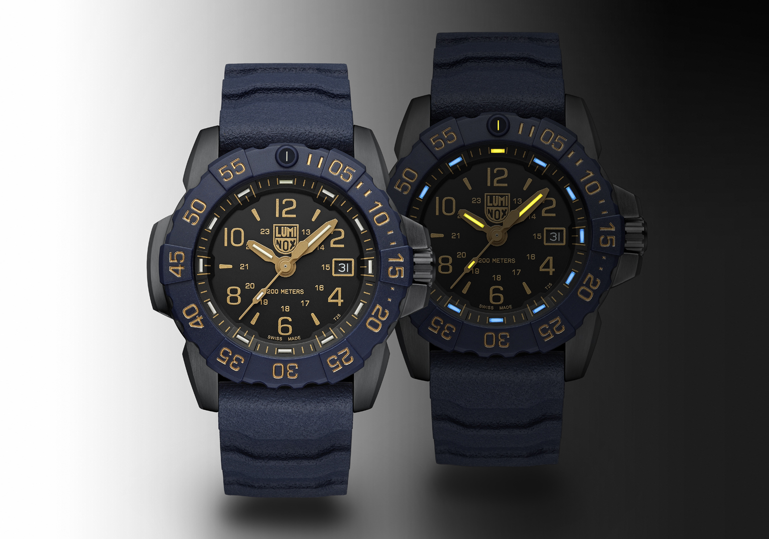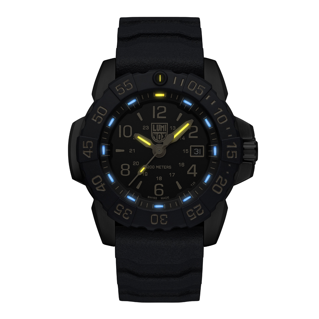 Luminox - Navy Seal Black/Gold & Blue, met rubberen band 200m WR, Saffierglas - XS.3255.CB.NSF